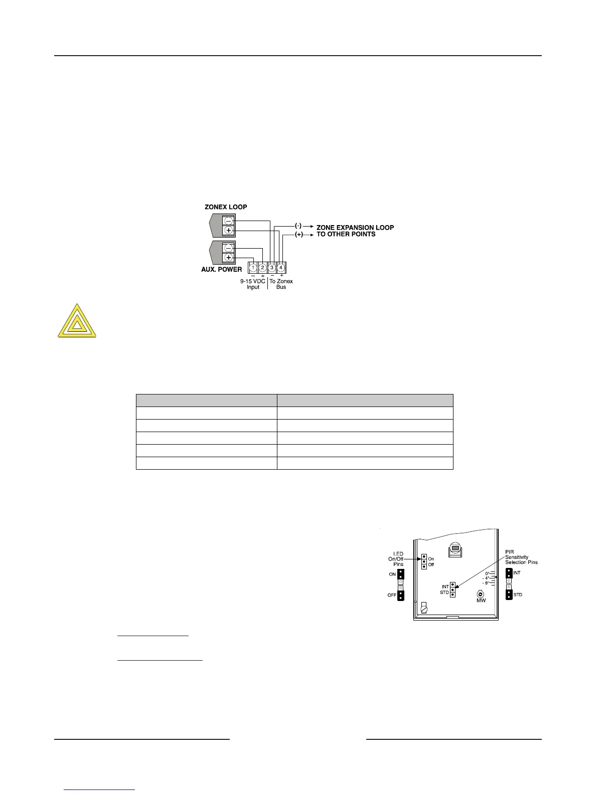 • PIR Sensitivity Selection Pins: The PIR response sensitivity may be selected