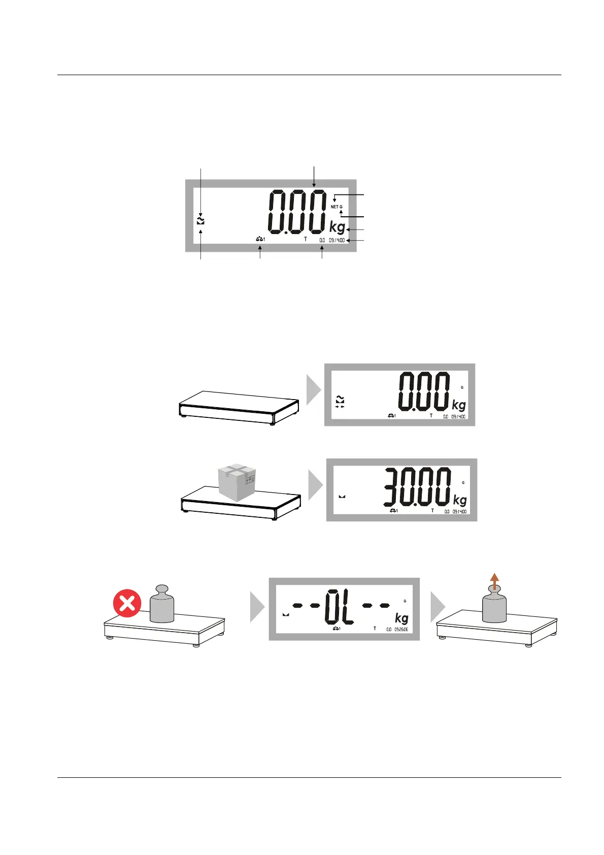 After switching on, the self-test and initialization of the scale, "zero" is shown.