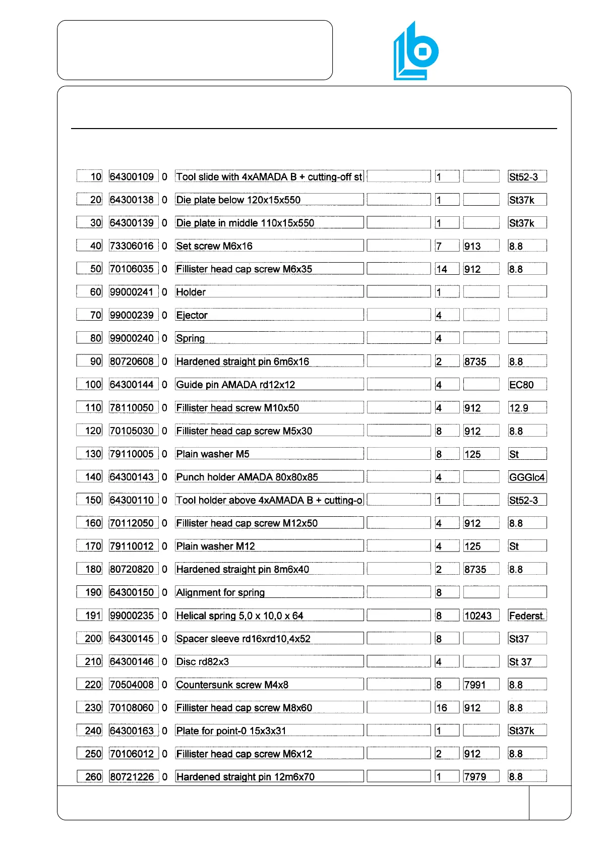 Boschert CU - PROFI - Parts List 614 03021 Tool Box