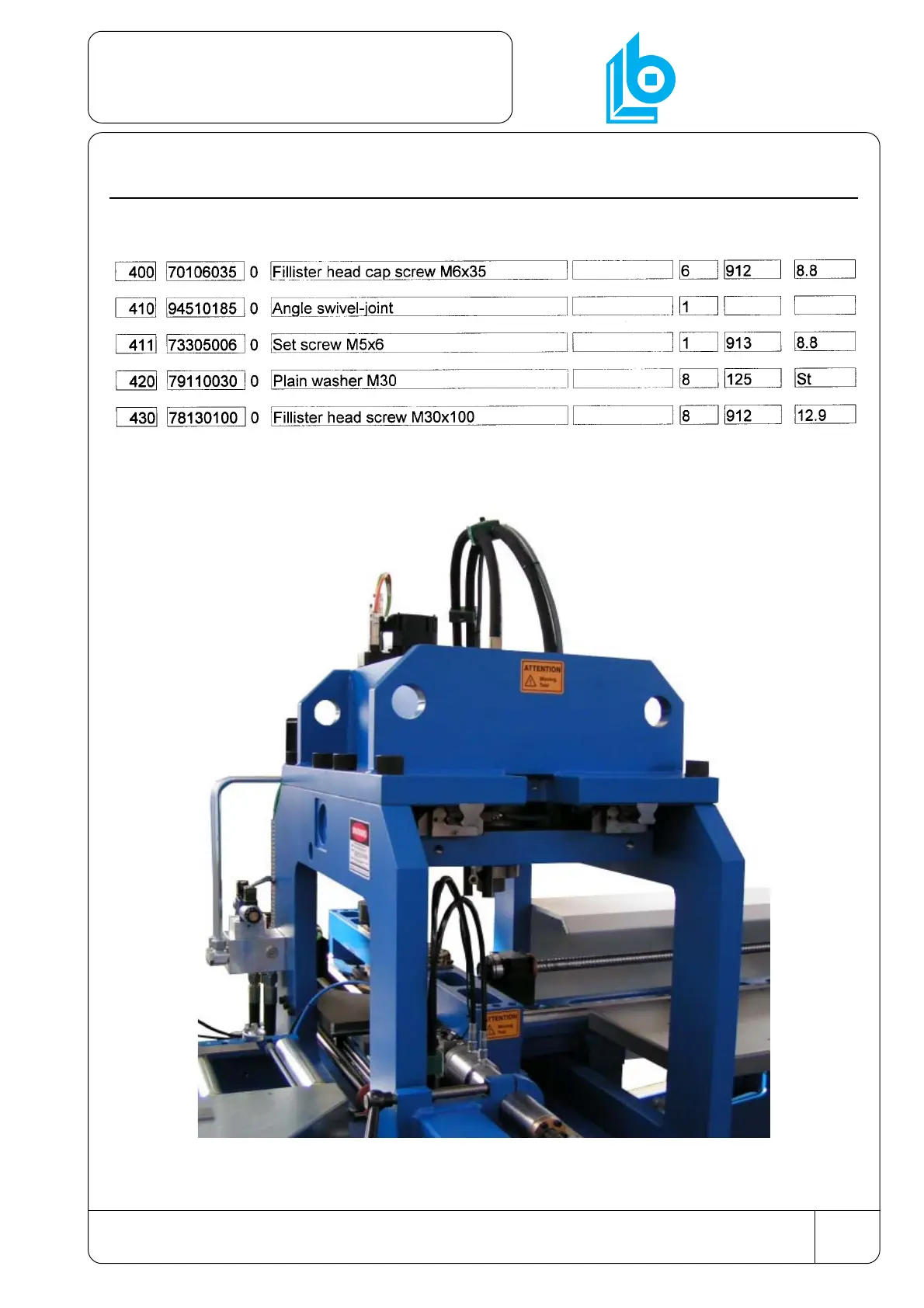 11.8.3 Parts list 614 03025 Punch head