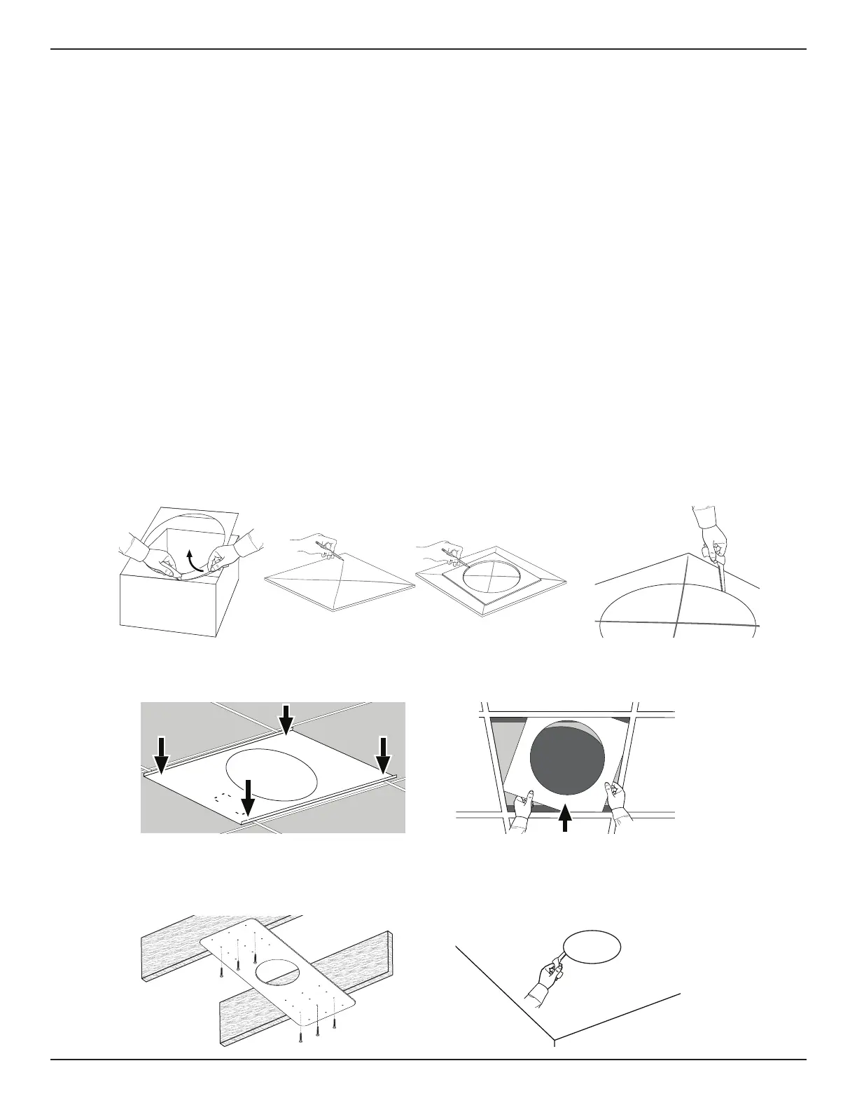 2. After the ceiling is finished, cut a hole in the finished ceiling, using the rough-in pan as a guide.
