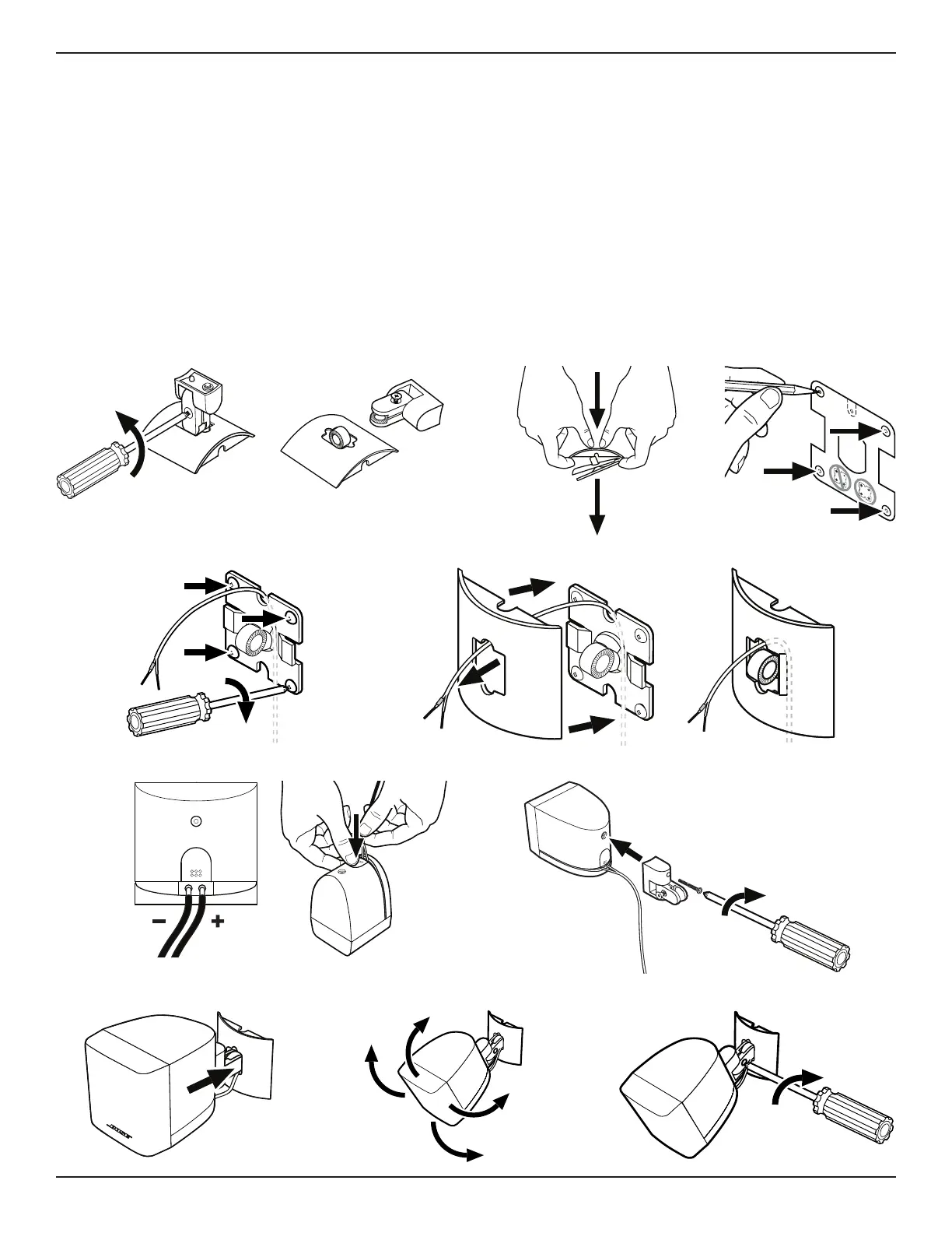 10. 將螺絲 (即步驟 1 中拆下的螺絲) 裝入旋轉接頭。鎖緊螺絲,依需求角度將揚聲器固定於壁掛支架。