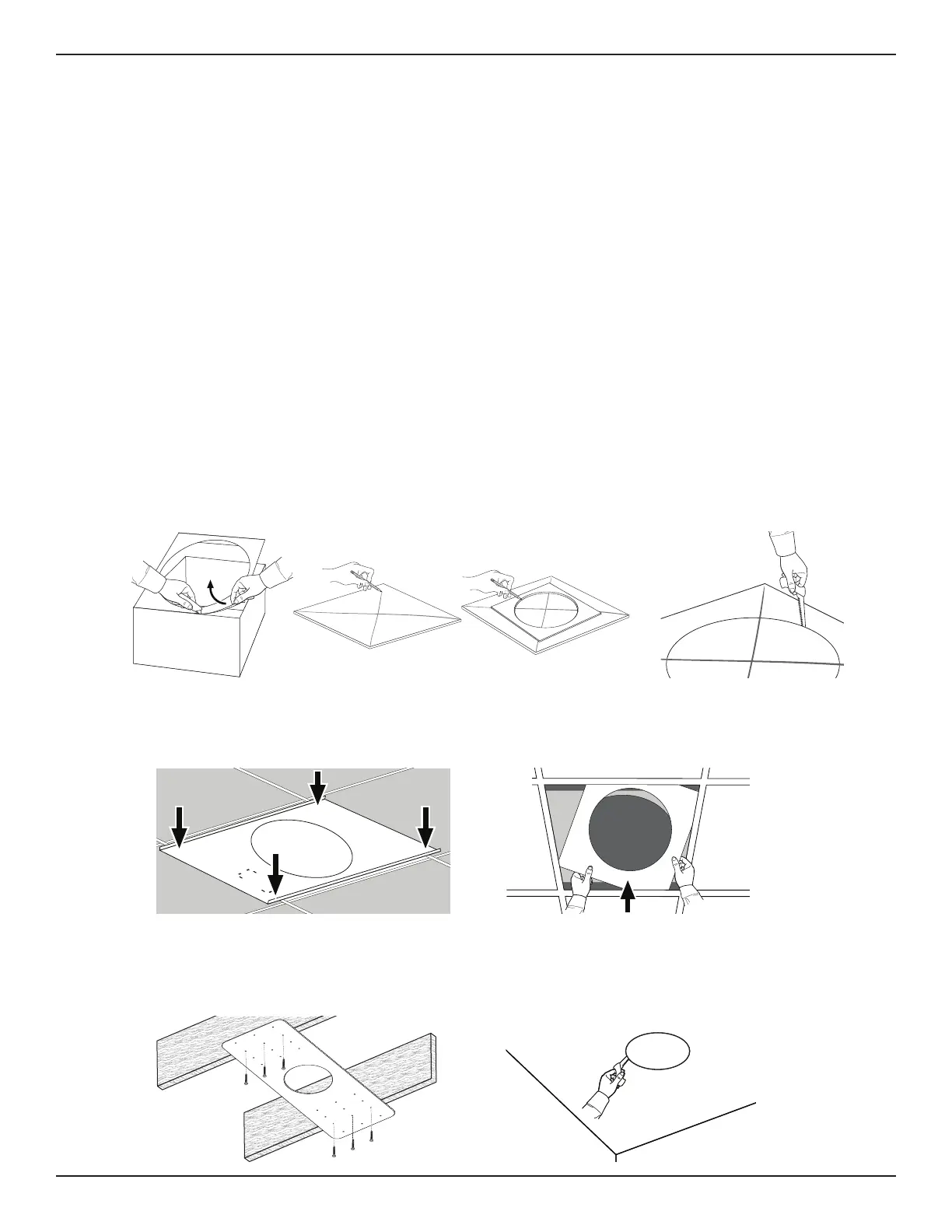 ラフインパンを使用して新築の硬い天井に設置の準備をする