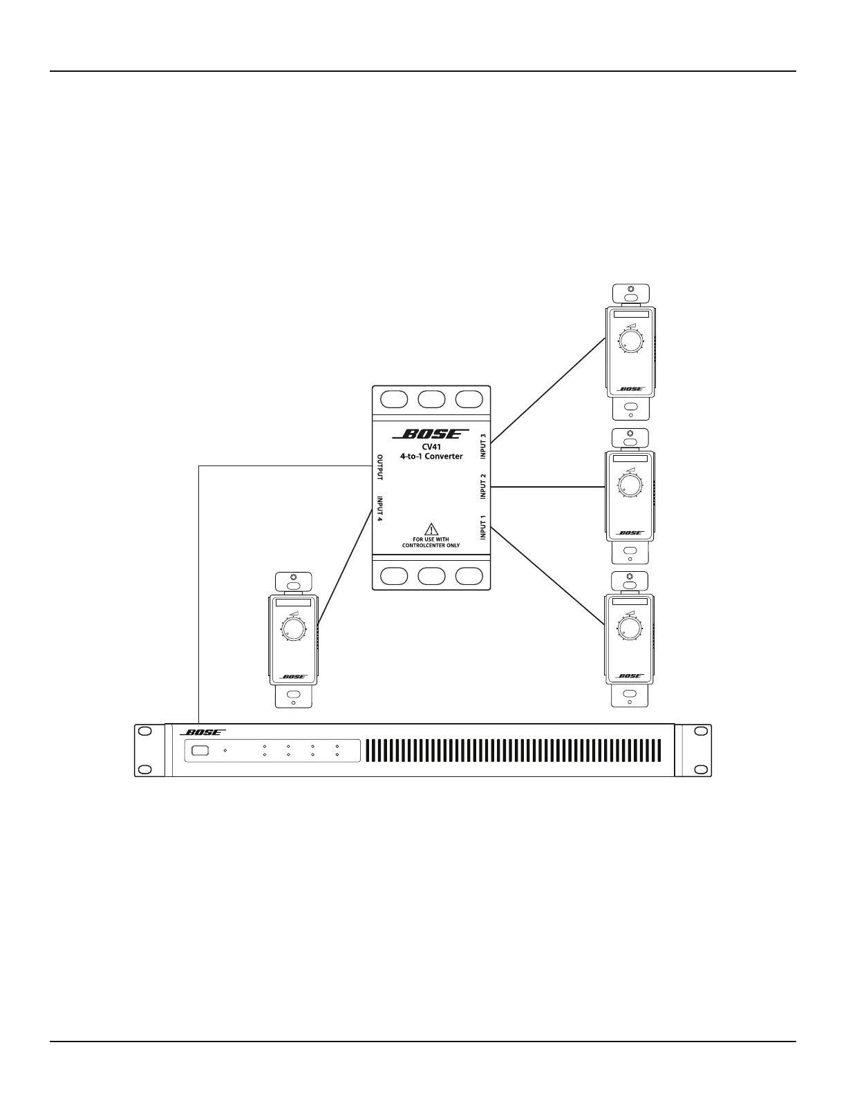 Converter, then create a single home run from the CV41 back to the amplifier. Create these connections using CAT 5 cables