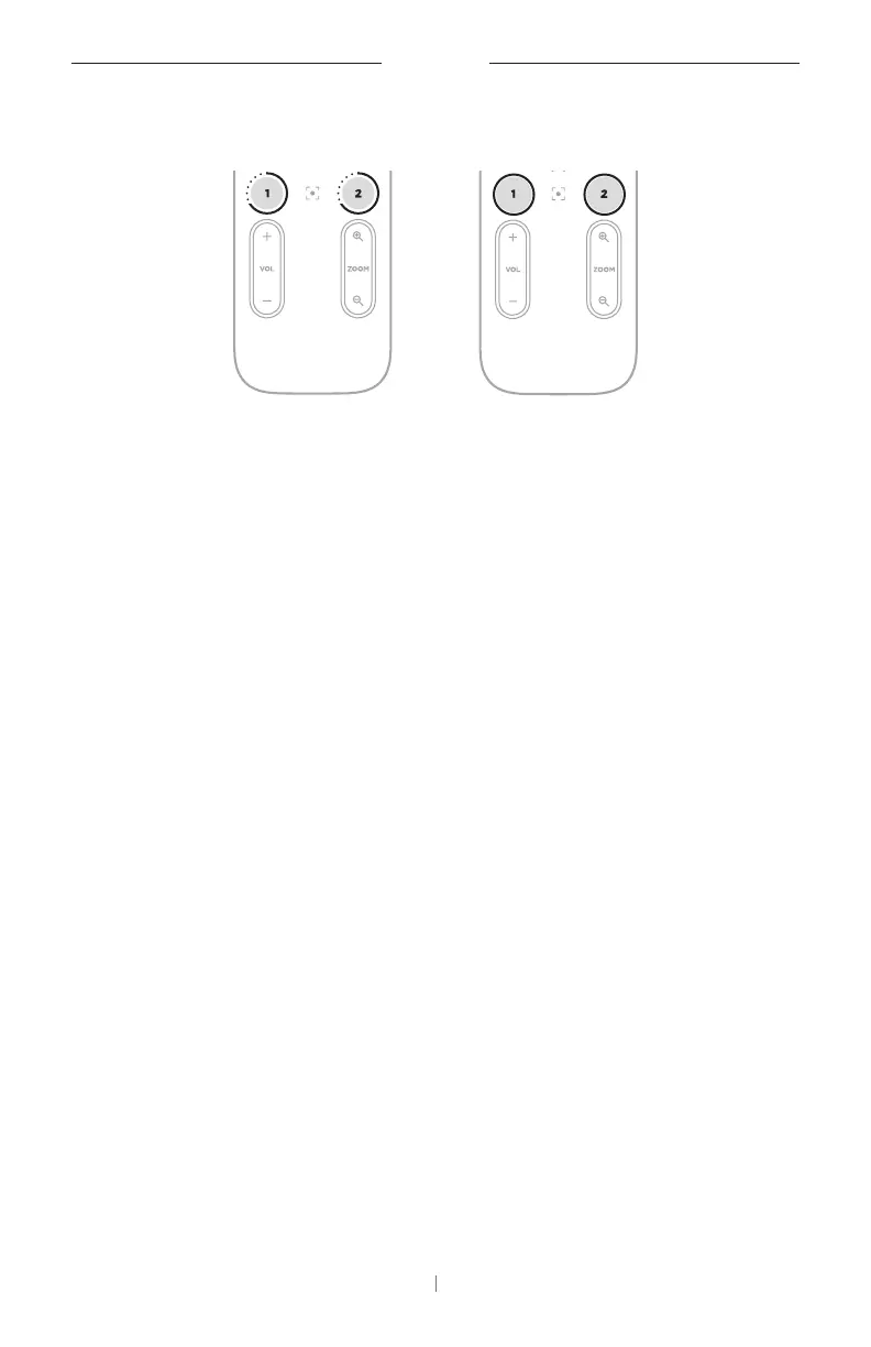 2. Houd de knop van de gewenste preset op de afstandsbediening (Preset 1 of