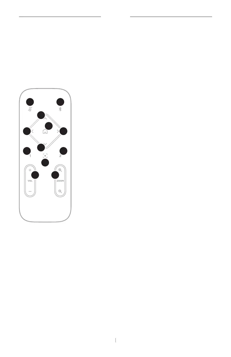 Videobar VB‑Sには、赤外線リモコンが付属します。リモコンを使って、カメラと音量の調節、マイ