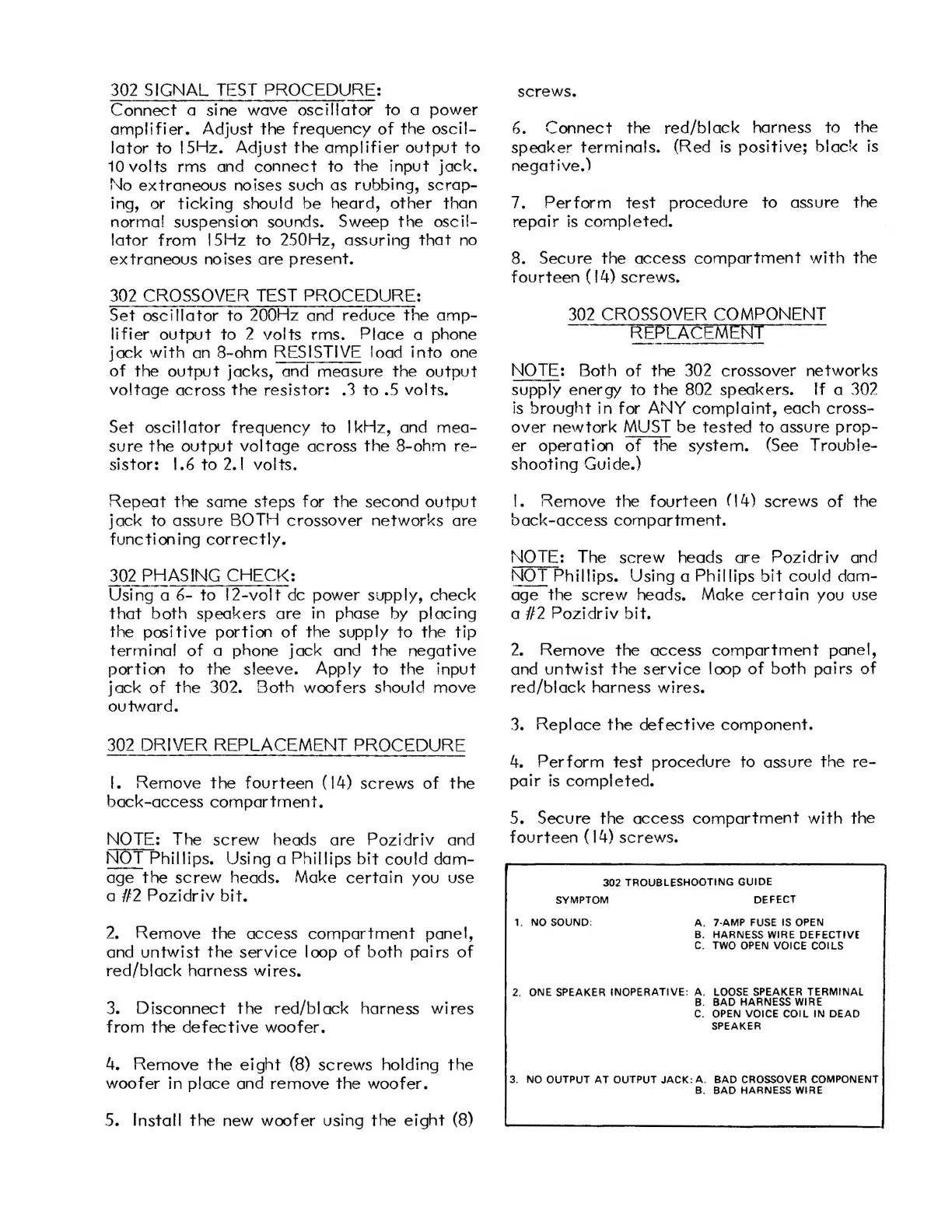 302 SIGNAL TEST PROCEDURE: