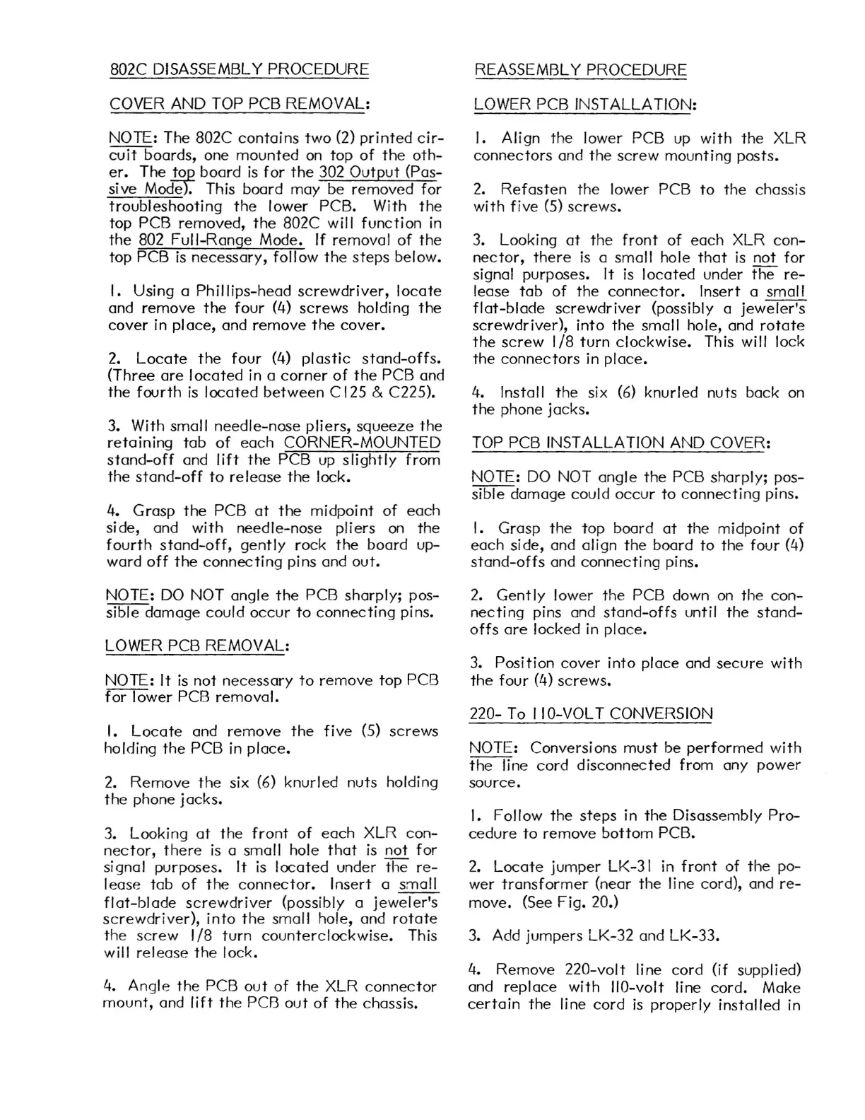 802C DISASSEMBLY PROCEDURE