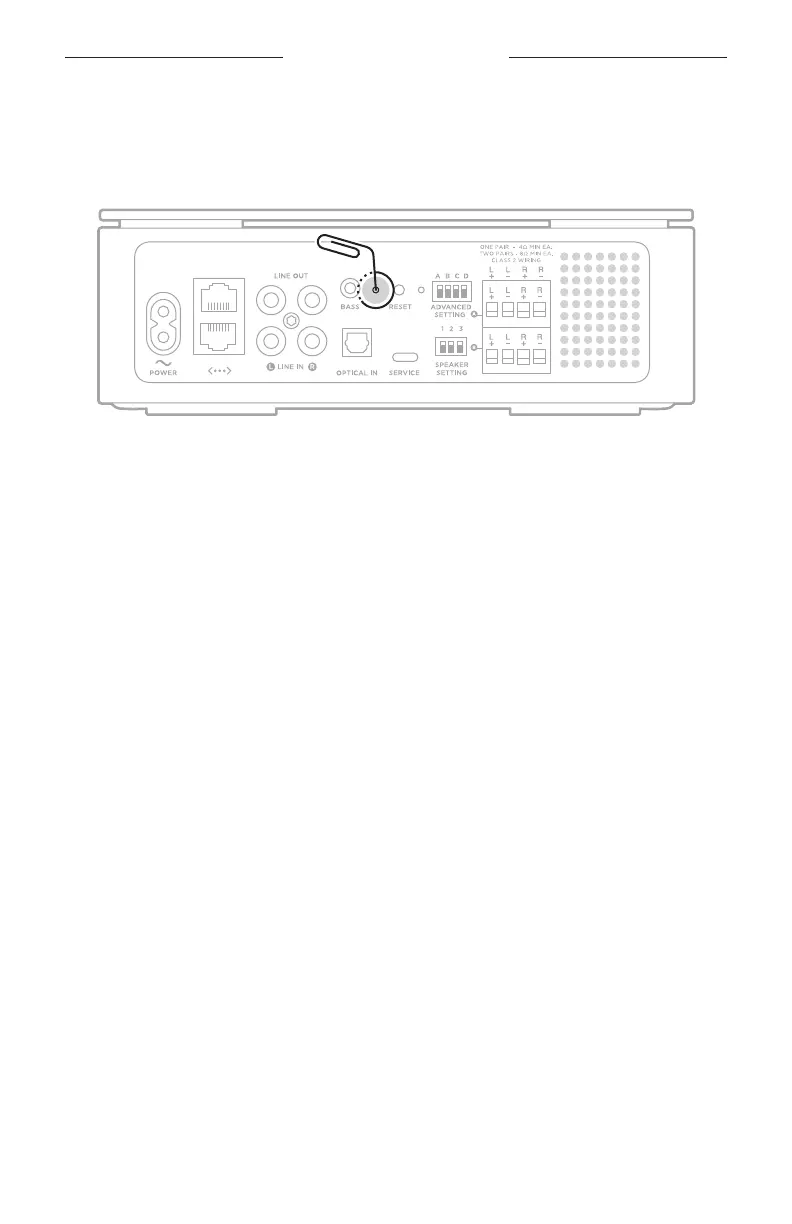 Insert a thin paperclip into the hole on the back of the amplifier and press and hold for