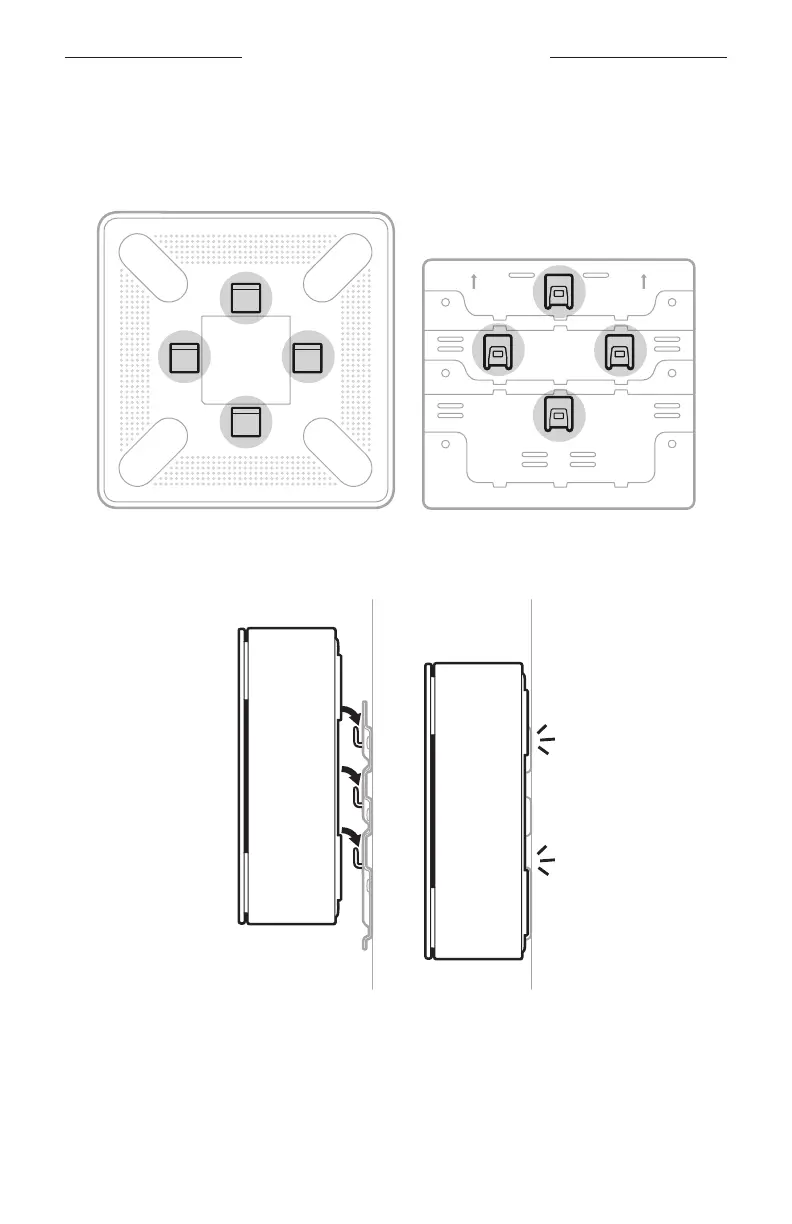 1. Align the four openings on the back of the amplifier with the four tabs on the