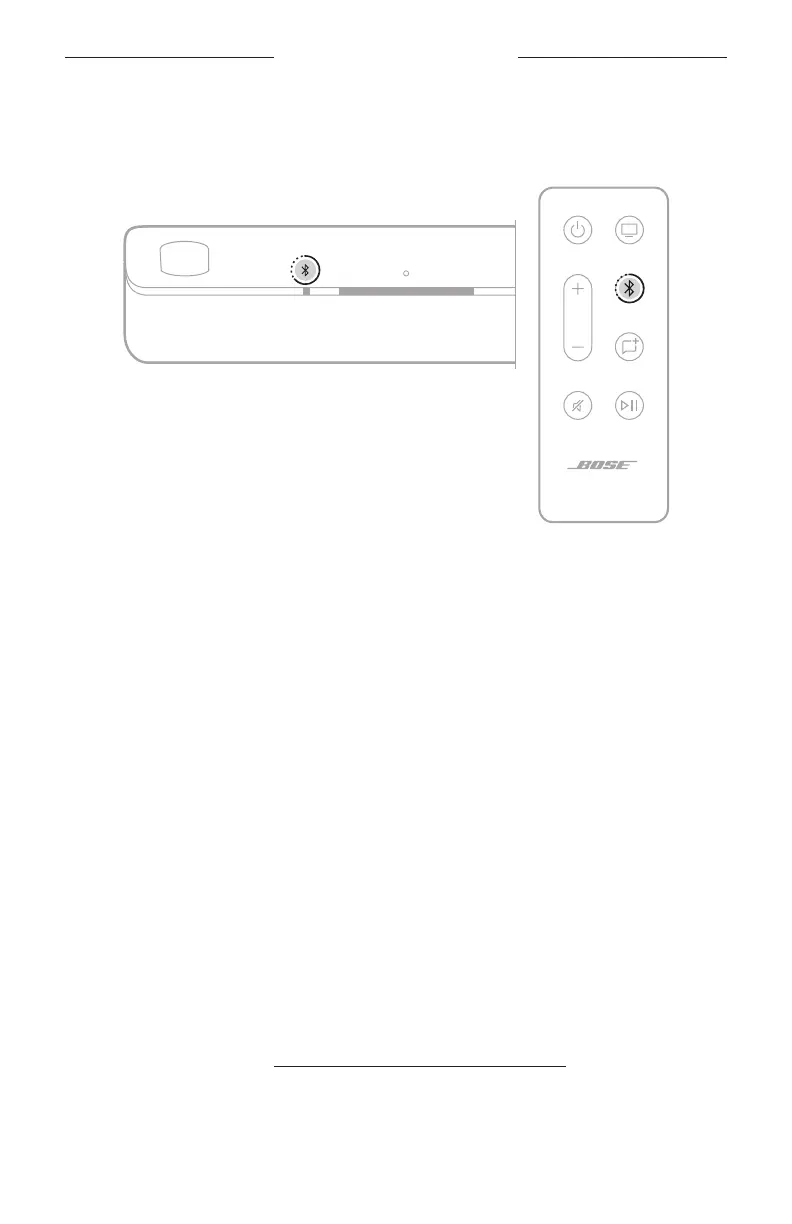1. On the soundbar or remote, press and hold the Bluetooth buon l until the light