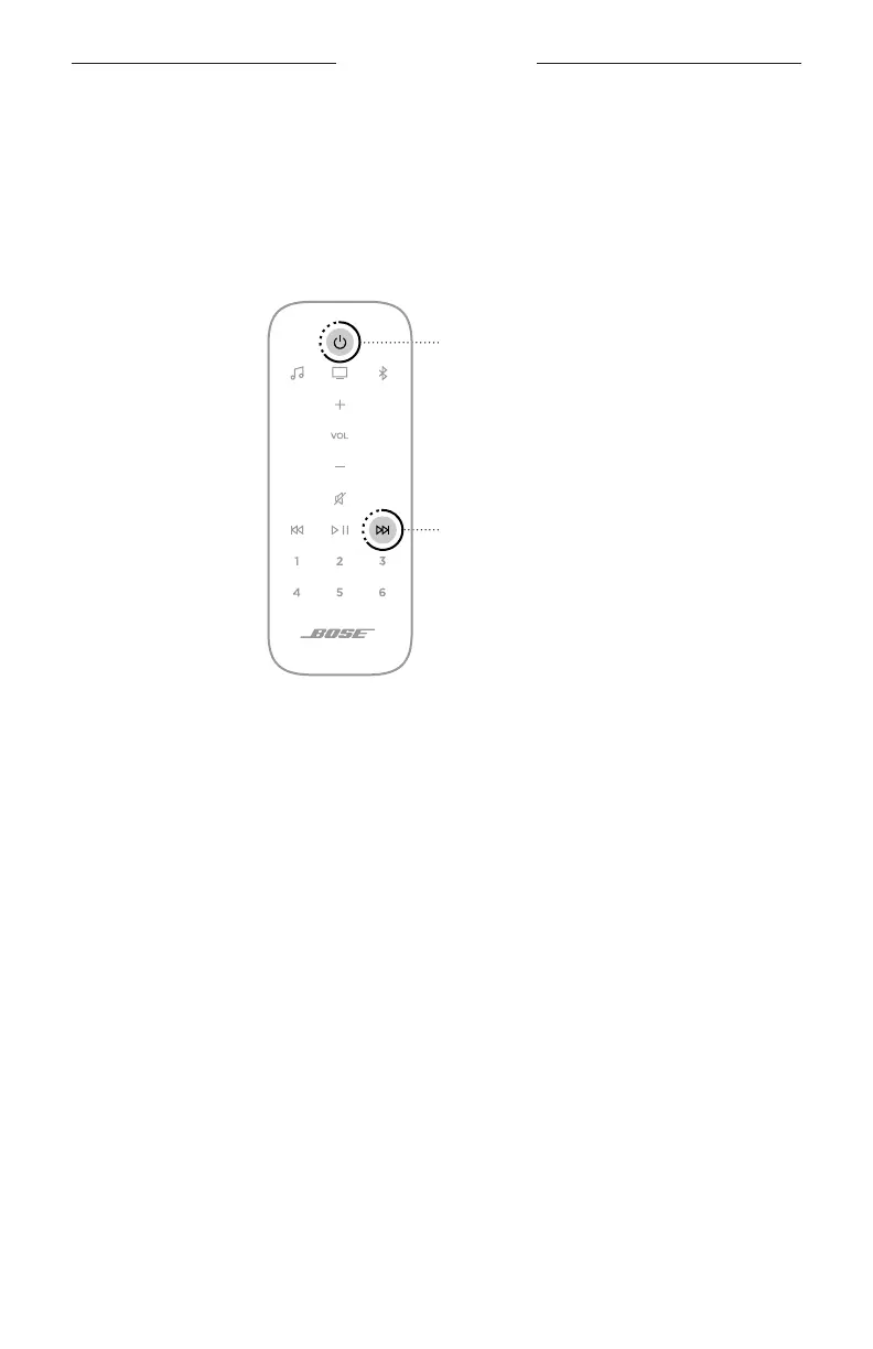 1. On the remote, press and hold the Power buon I and Skip forward buon v for