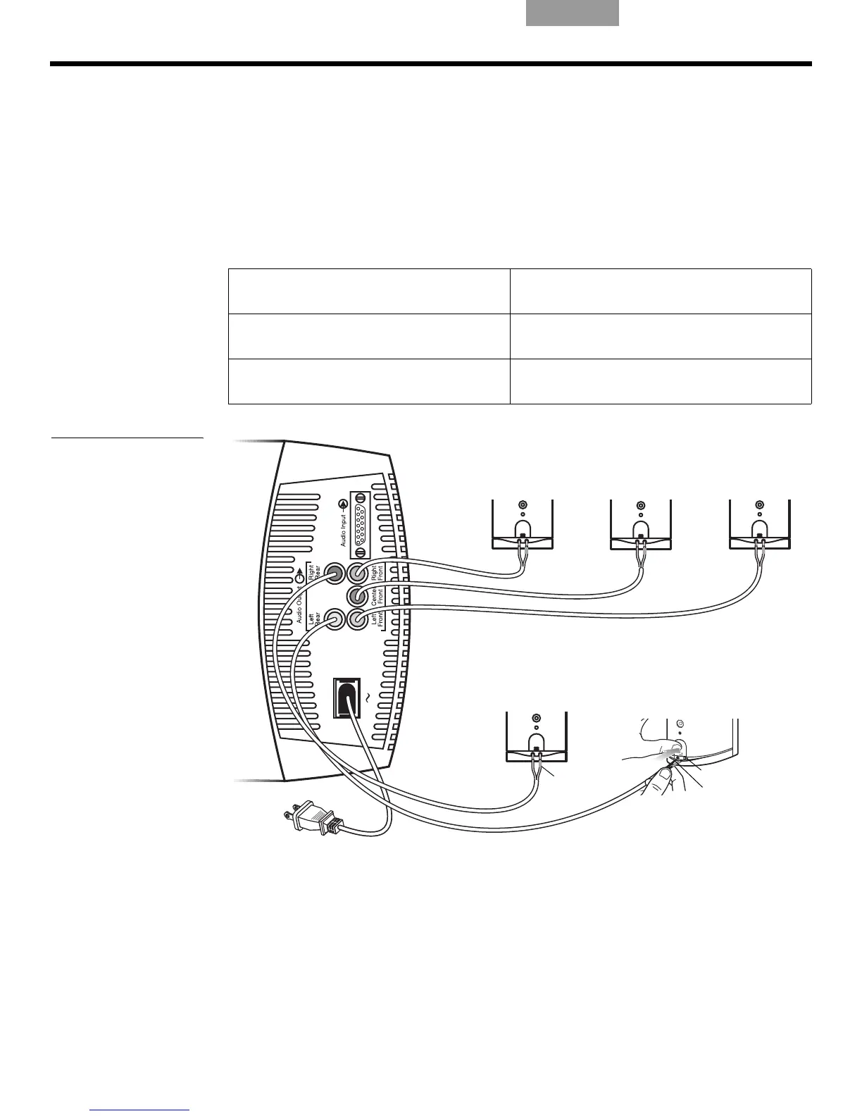 • Le câble marqué LR dans le jack marqué « Left Rear ».
