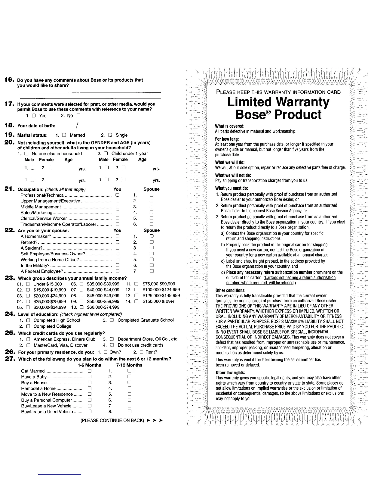 PLEASE KEEP THIS WARRANTY INFORMATION CARD