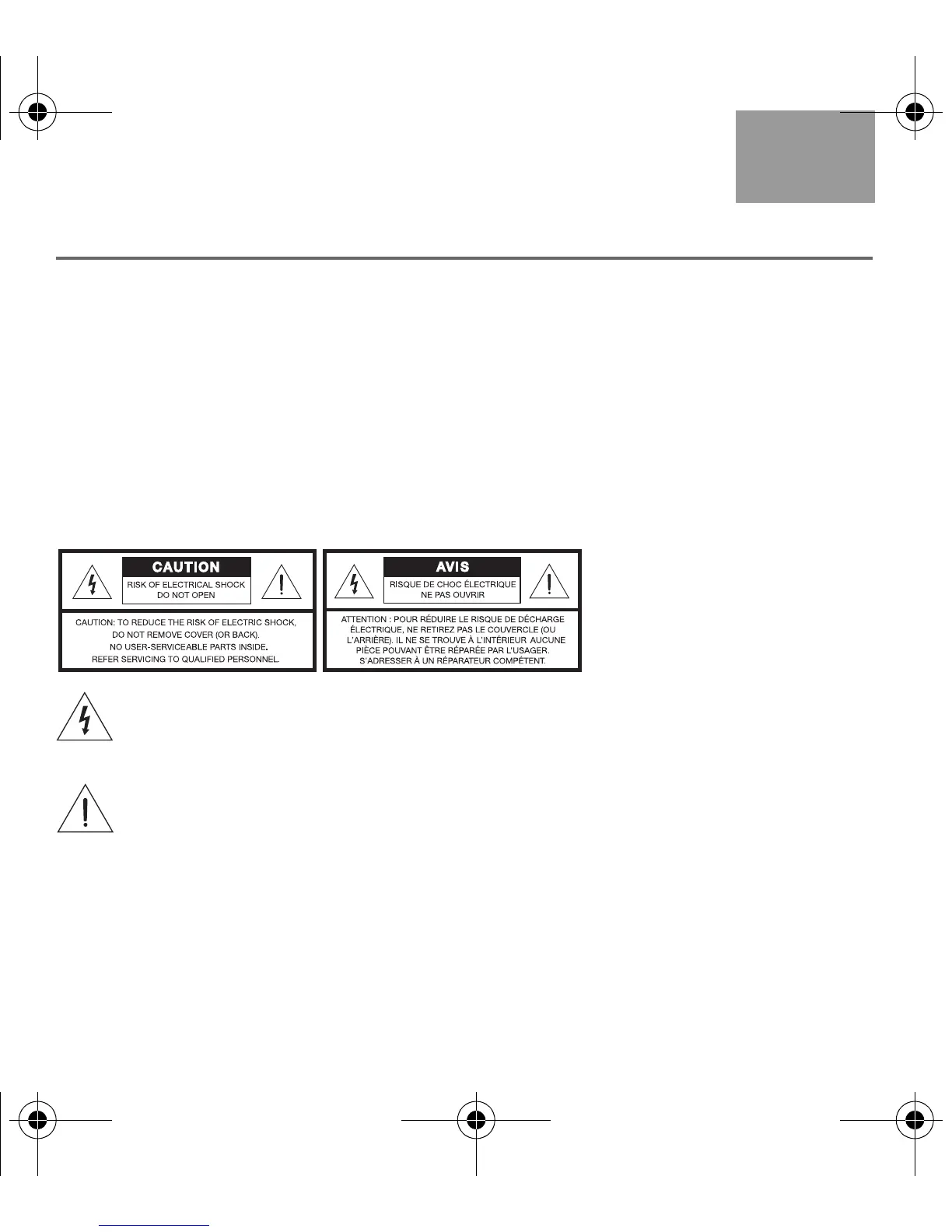 WARNING: To reduce the risk of fire or electrical shock, do not expose the product to