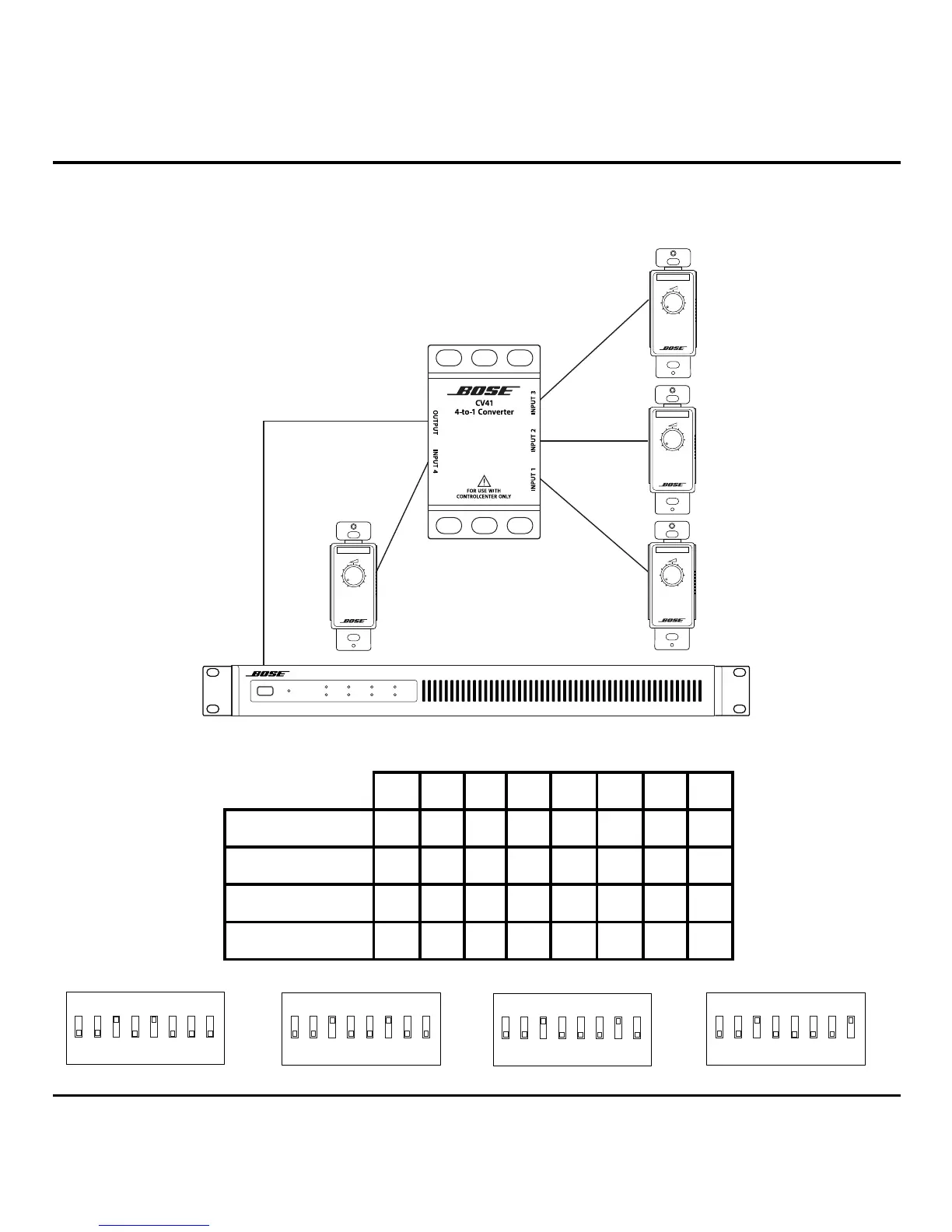 Connect up to four CC-1 zone controllers to the PowerShare PS404A and PS604A amplifier, or