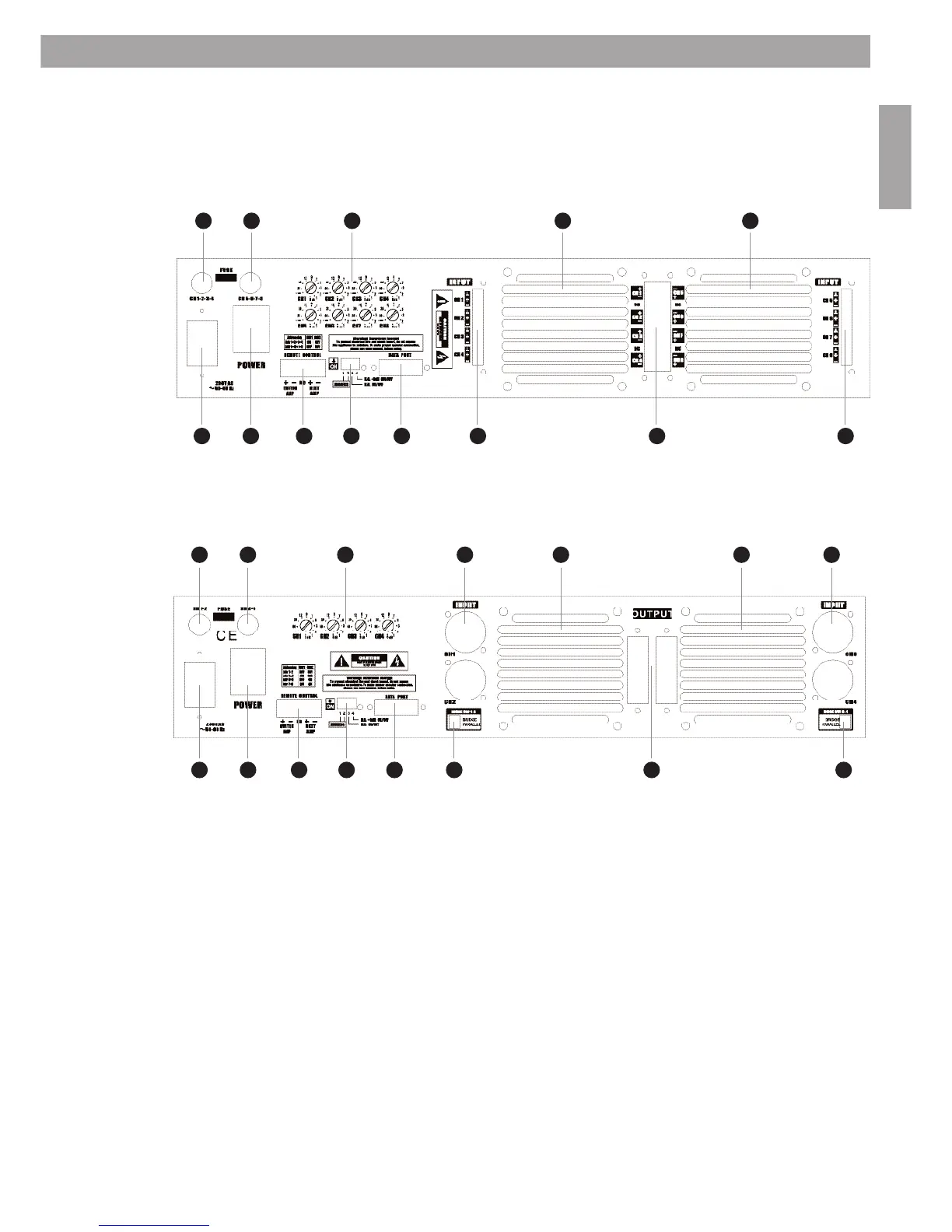 16. DIP Switch for Stereo, Parallel and Bridge Mode, Channel 1 and 2