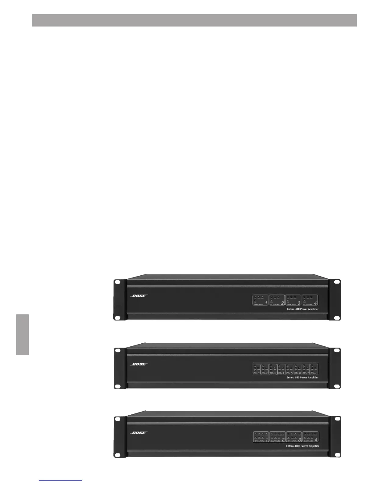 De versterkers moeten worden geplaatst in een standaard 19-inch rek dat genoeg diepte heeft. Voor de