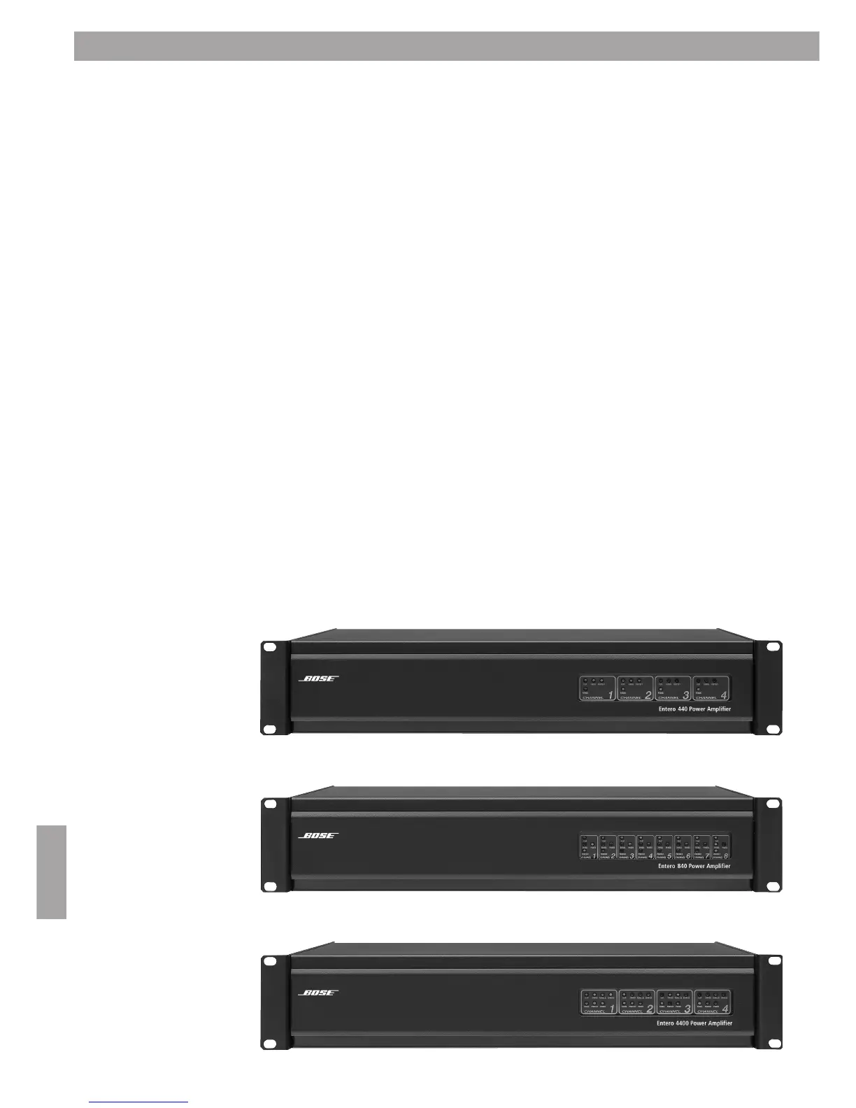 Förstärkarna kan monteras i 19-tums standardstativ som har tillräckligt djup. Vid installationen ska 4