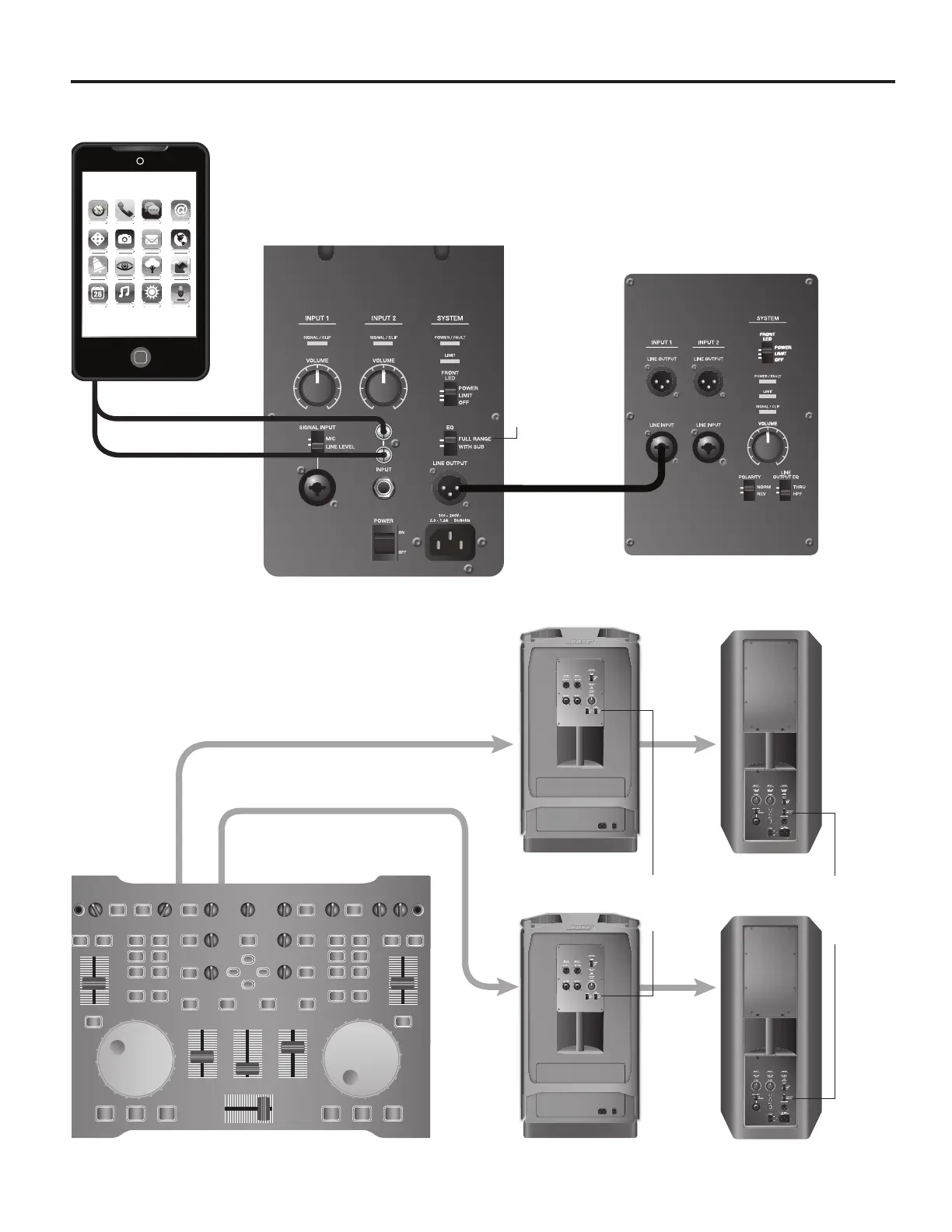 Bose F1 - Dj-Console Naar Twee F1 Subwoofers en Twee F1 Model 812 Loudspeakers; Mobiel Apparaat Naar F1 Model 812 Loudspeaker en F1 Subwoofer