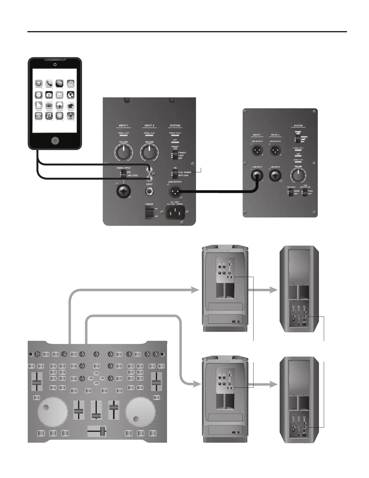 DJ-konsol till två F1-subwoofers och två F1 Model 812-högtalare