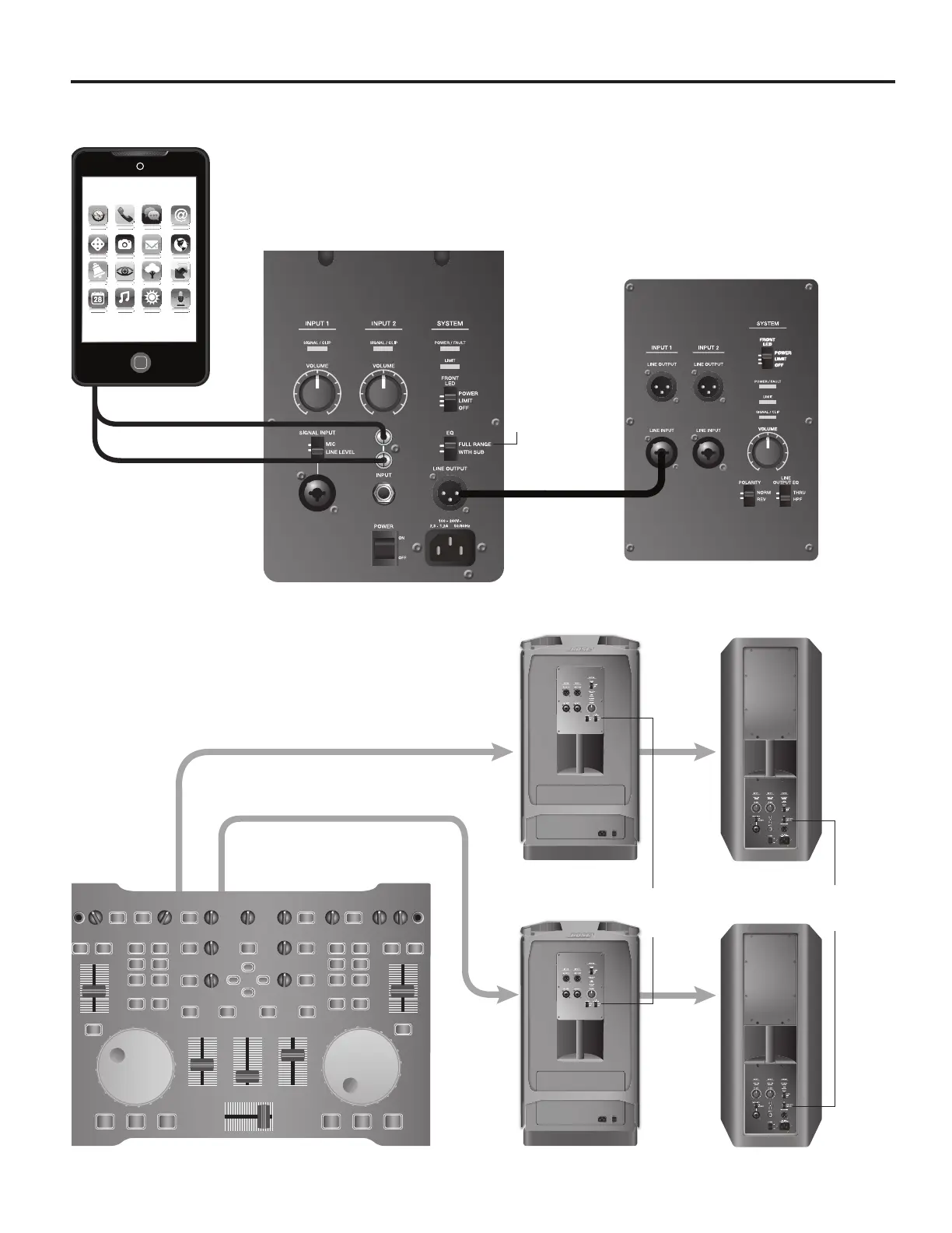 DJ-pult til to F1 subwoofere og to F1 Model 812 højttalere