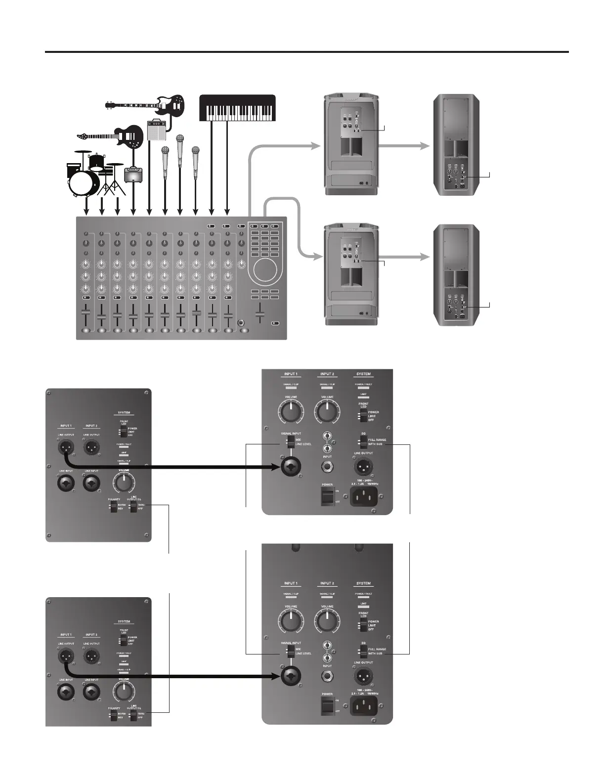 Bose F1 - Stereoeingang zu Linkem;Rechtem F1 Subwoofer und F1 Model 812 Lautsprechern; Volle Bandbreite mit Mischpult-Stereoausgang zu Zwei F1 Subwoofern und Zwei F1 Model 812 Lautsprechern