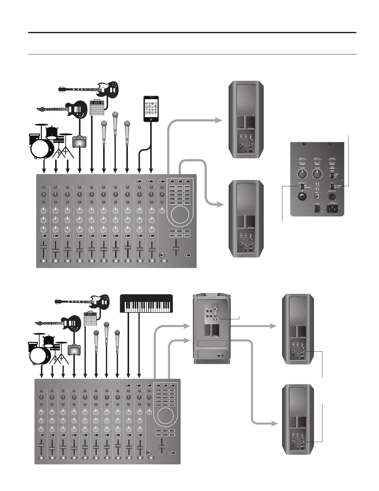 Ensemble instrumental, sortie stéréo de la console de mixage vers les enceintes gauche/