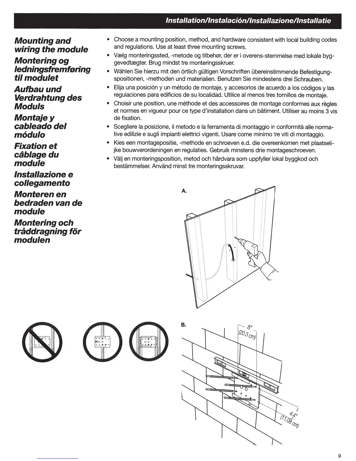 lnstal/ation/lnstalaci6n/lnstallazione/lnstallatie