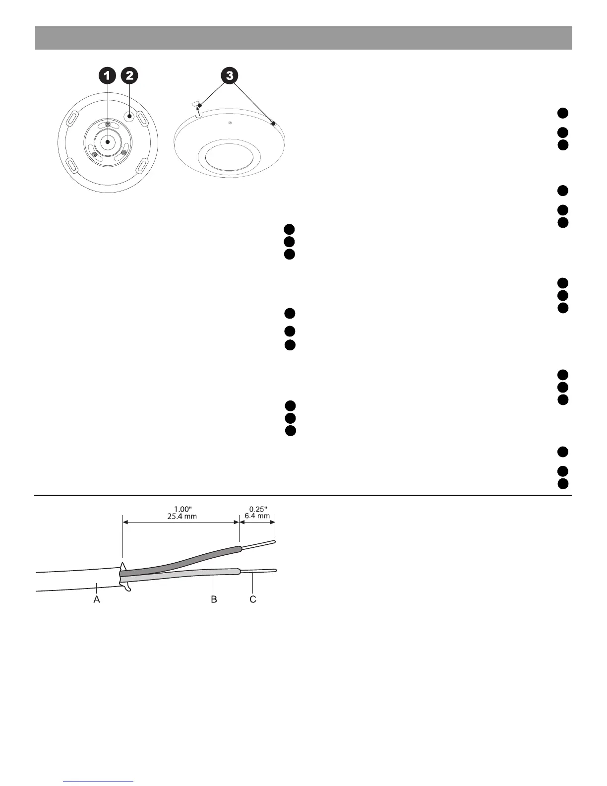 des fils (B) afin d’exposer la longueur de fil nu (C) nécessaire au