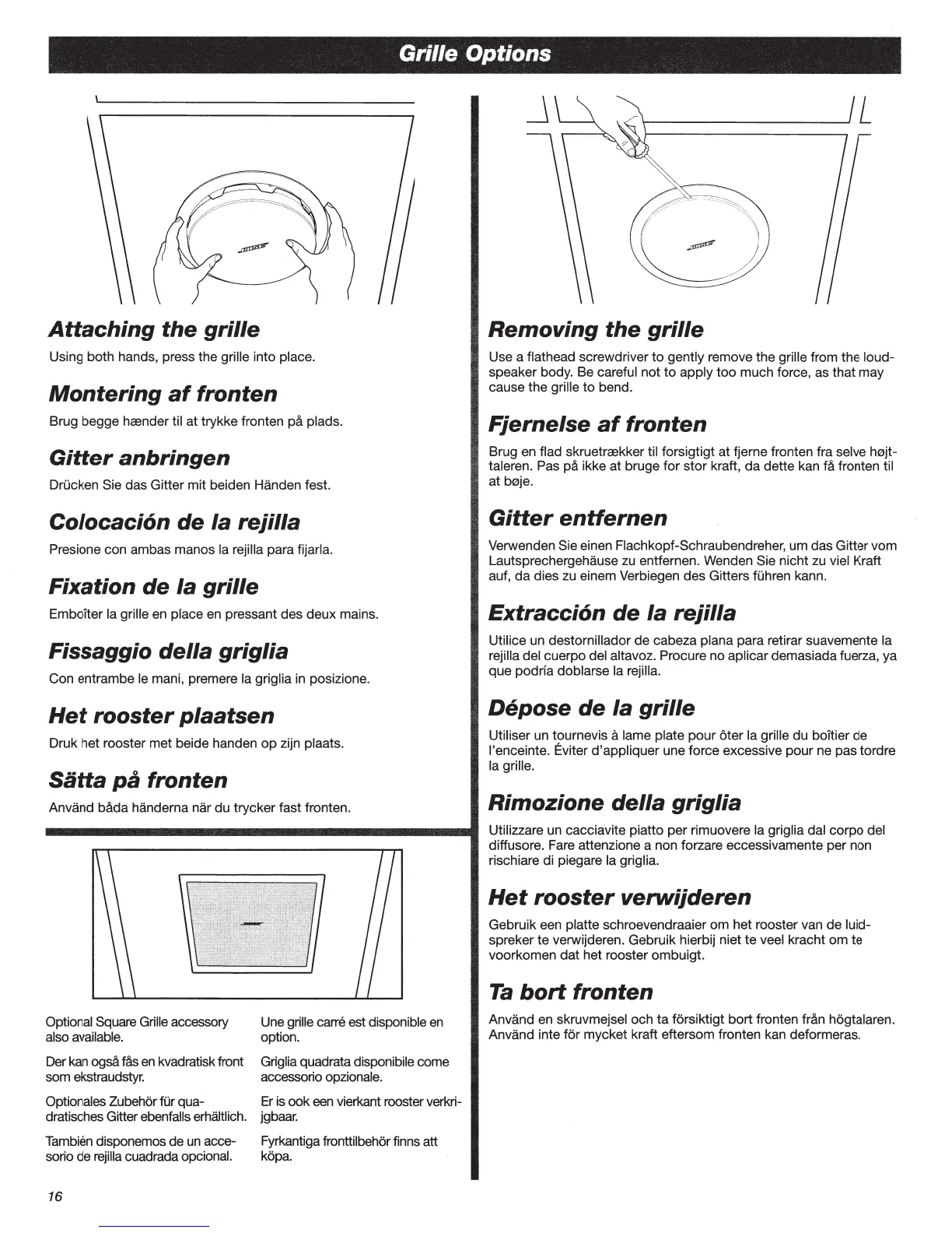 rejilla del cuerpo del altavoz. Procure no aplicar demasiada fuerza, ya