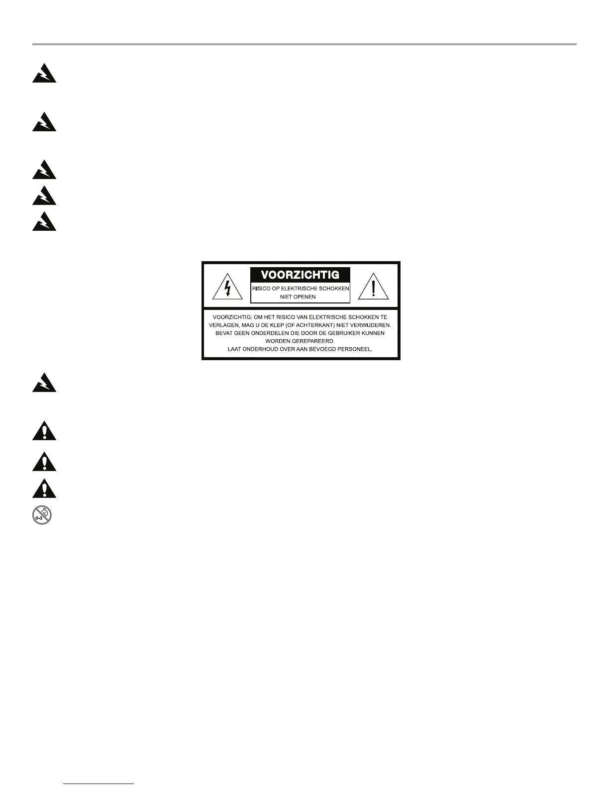 Het symbool met bliksemschicht en pijl in een gelijkzijdige driehoek is bedoeld om de gebruiker te waarschuwen