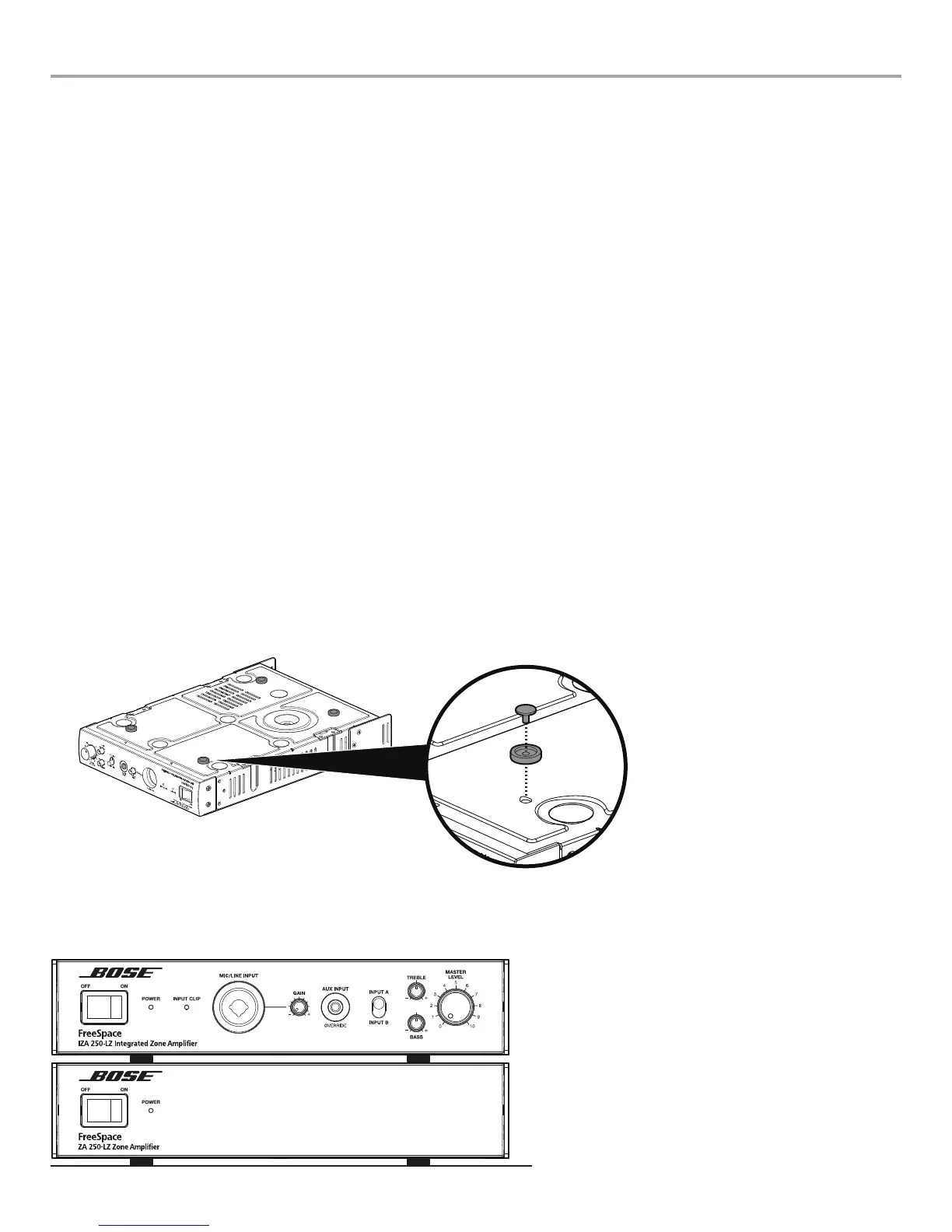 Note: The included feet always shall be used on both amplifiers when stacking them to ensure proper ventilation.