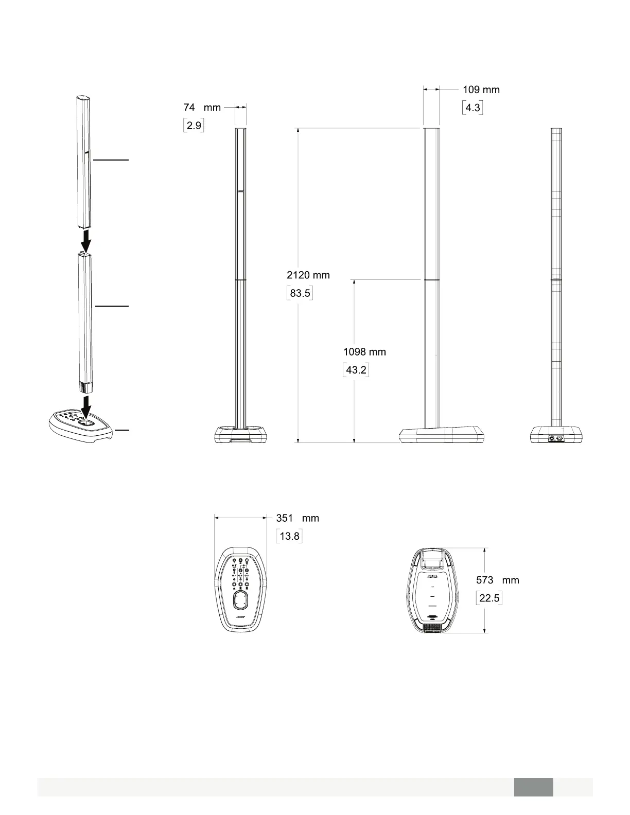 Bose L1 PRO32 + SUB2 - Product Dimensions