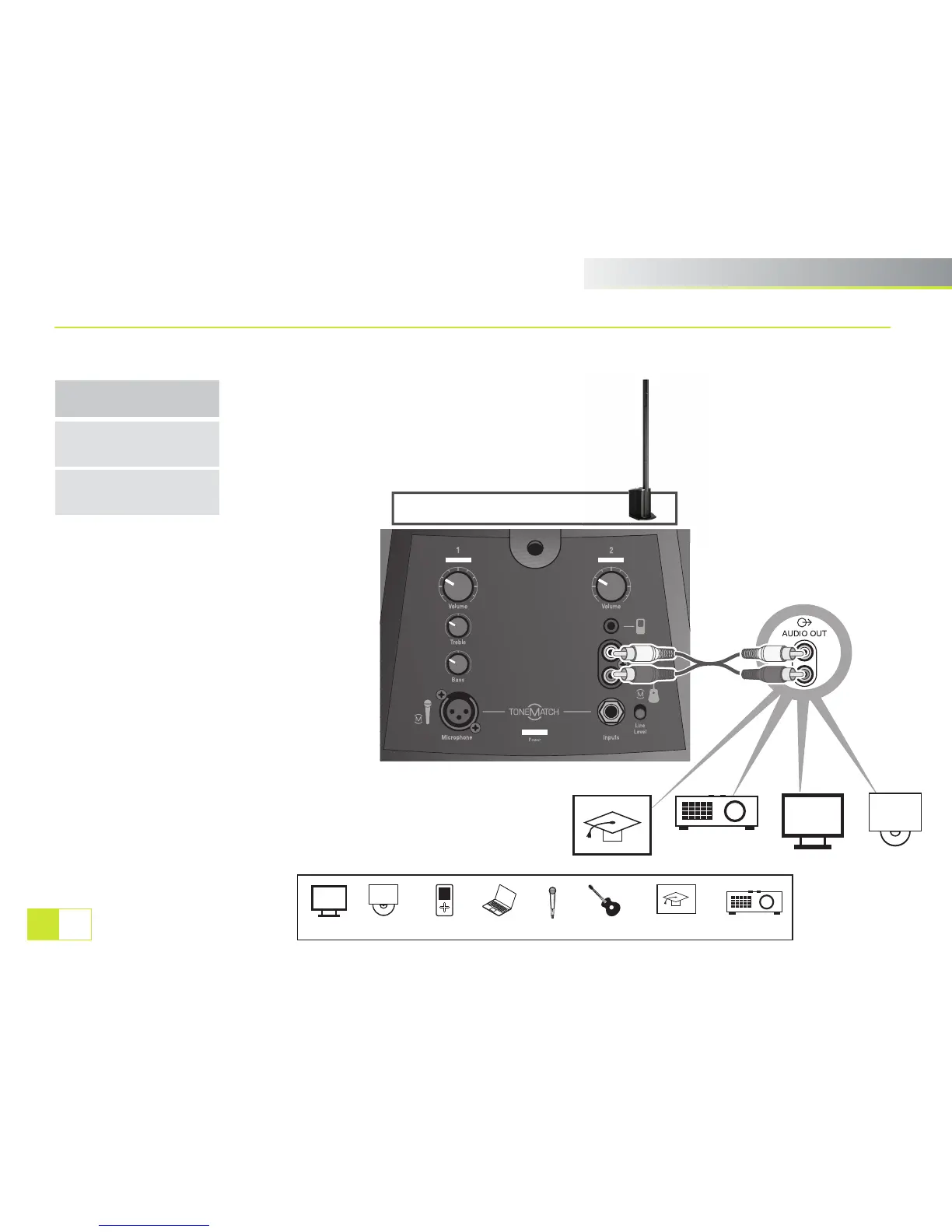 TV DVD/video MP3 player Laptop/PC Microphone Instrument