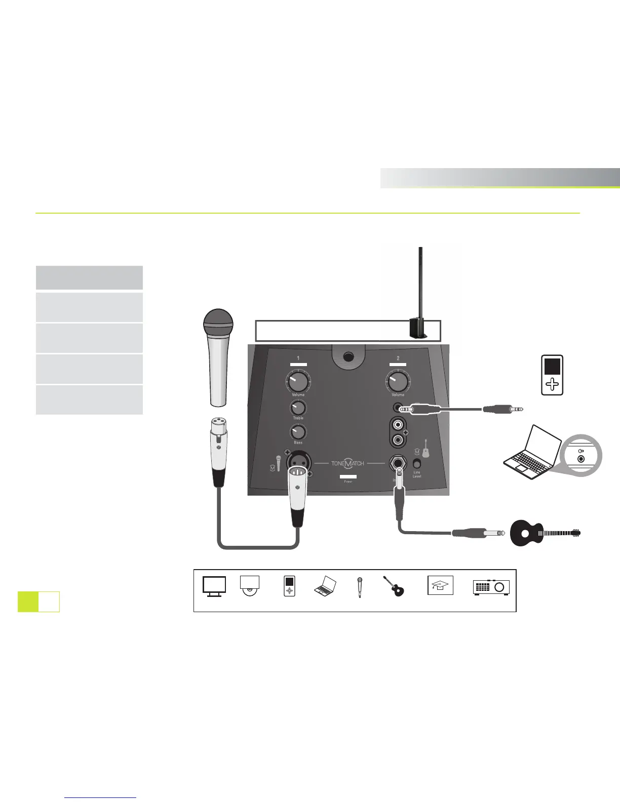 TV DVD/video MP3 player Laptop/PC Microphone Instrument