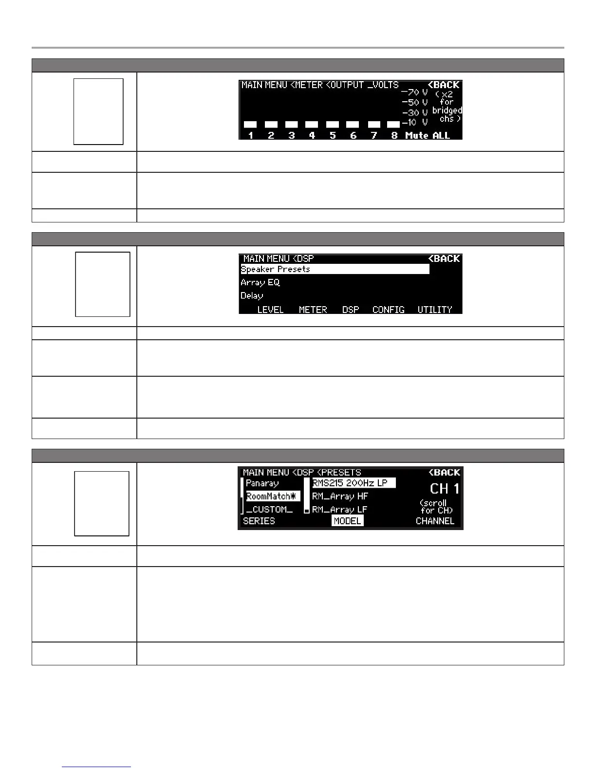 Description This display allows you to monitor each configured output channel voltage. For channels set to output modes other than Mono, metering is bound