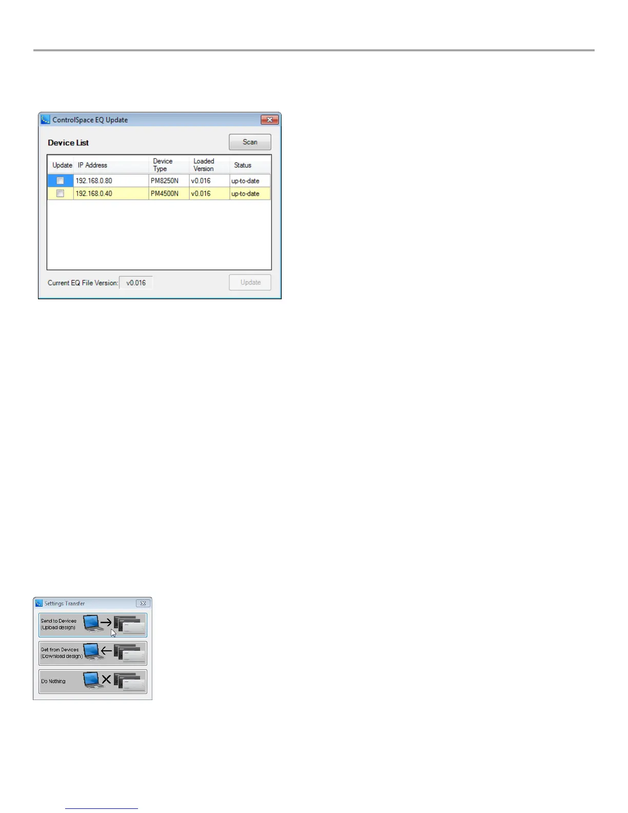 5. Click “Send to Device” in the Settings Transfer window (Figure 17) to push the settings to the connected amplifier.