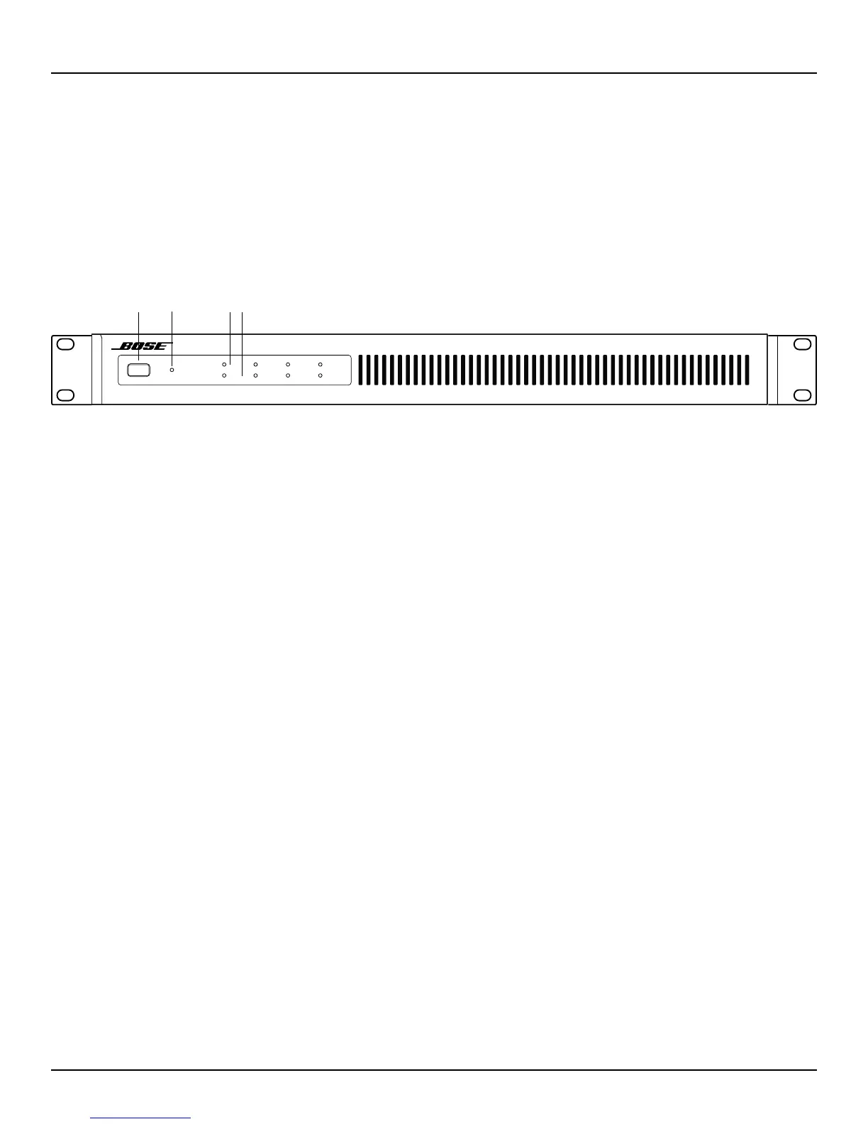 • All four LEDs will display solid red when all outputs are muted due to an amplifier fault, or if there is a power supply