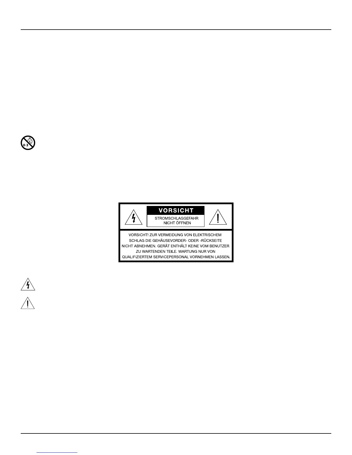• Um Brände und Stromschläge zu vermeiden, darf dieses Produkt weder Regen noch Feuchtigkeit ausgesetzt werden.