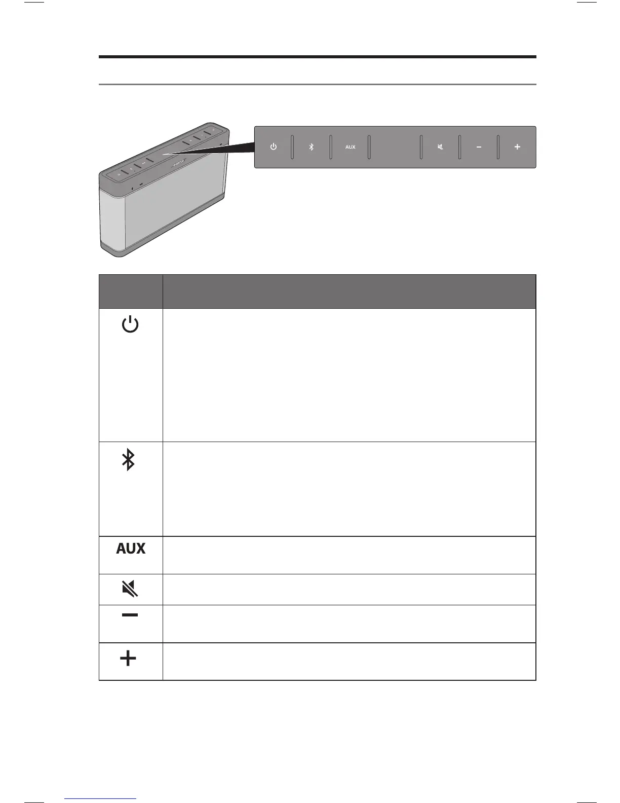 Press to turn the speaker on or off.