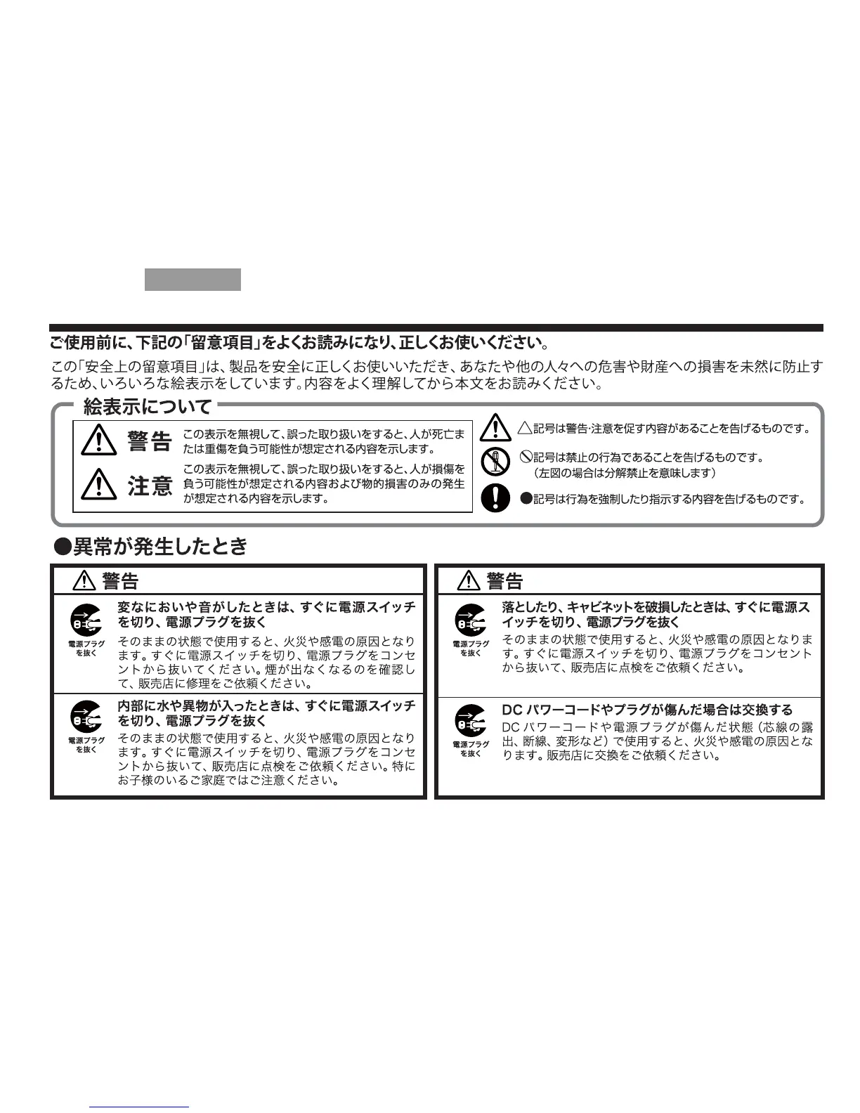 安全上の留意項目