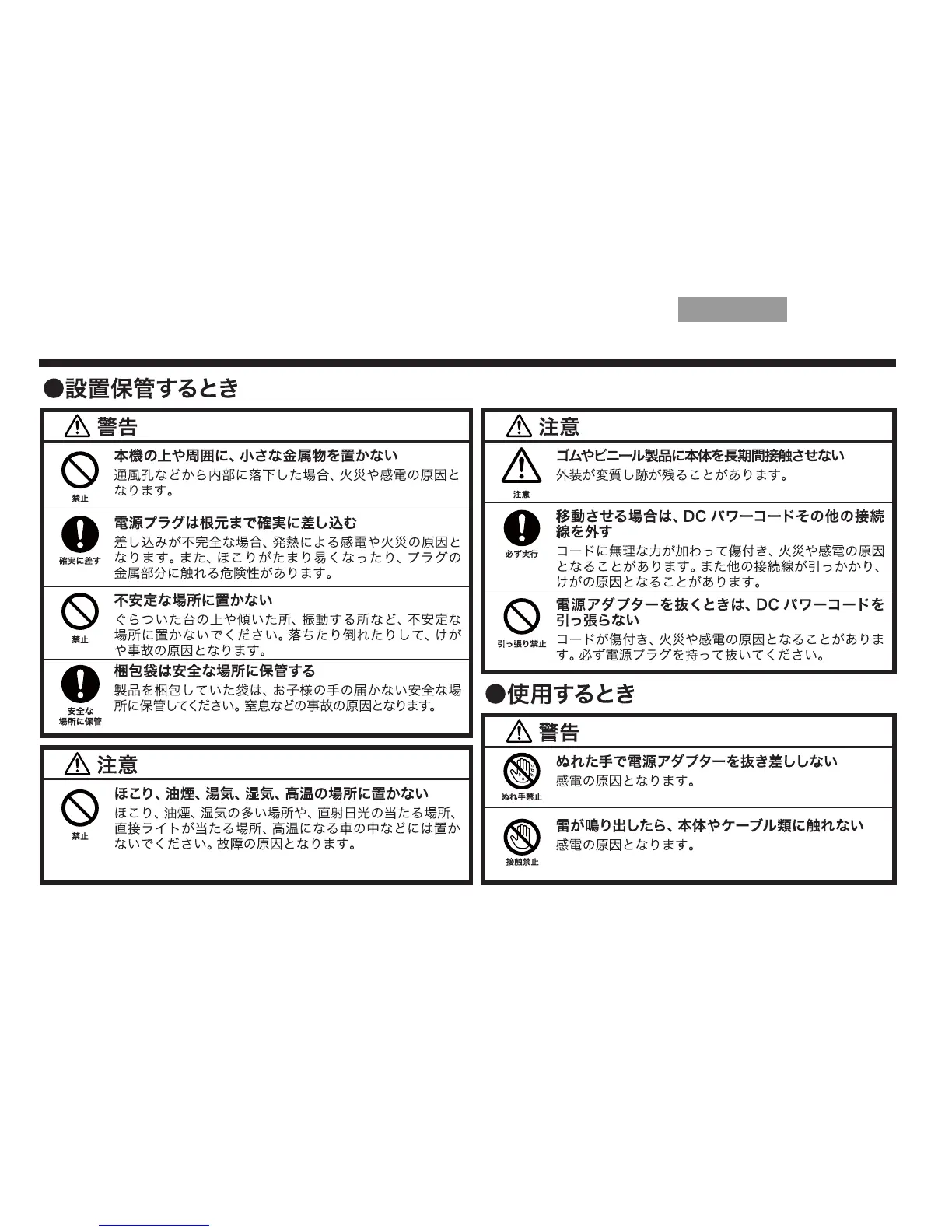 全上の留意項安全上の留意項目