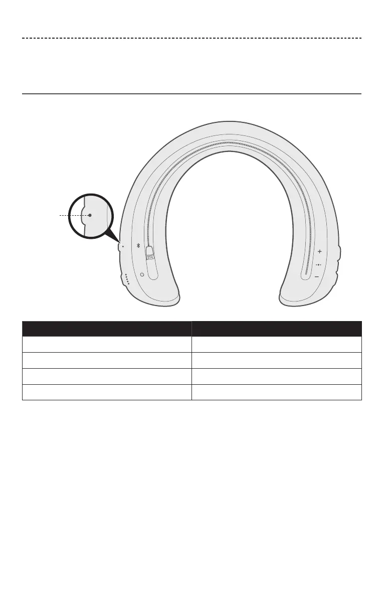 Wskaźnik Bluetooth iwskaźniki akumulatora znajdują się na dolnej stronie głośnika.