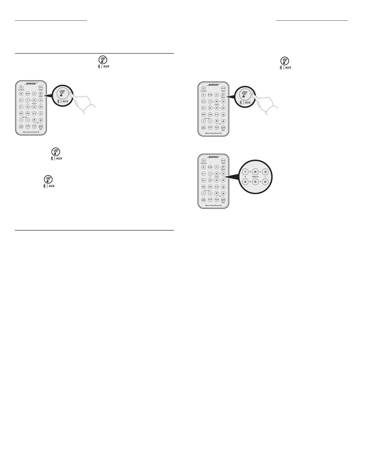 • Sie können keine Presets im Bluetooth-Modus oder AUX-Modus