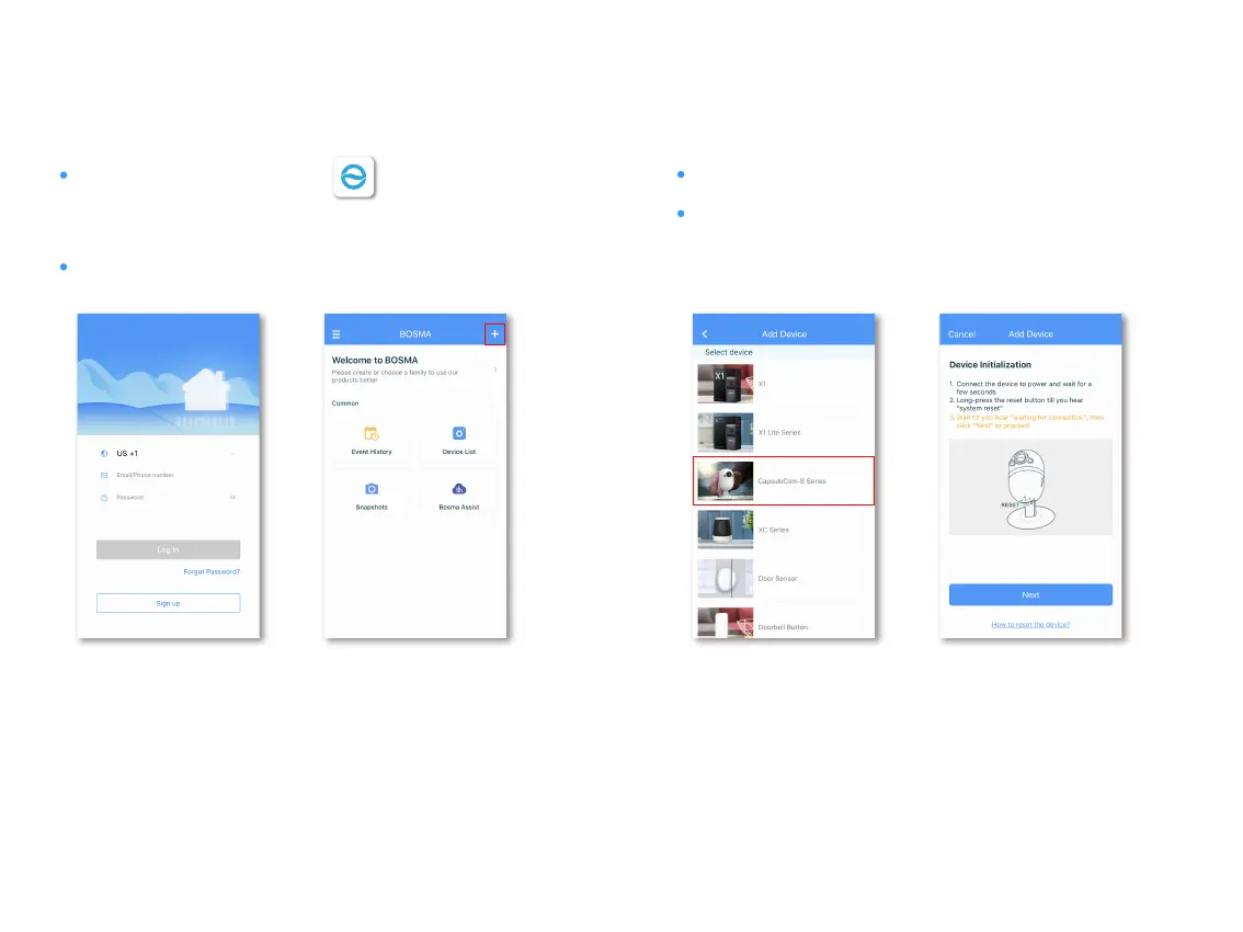 Bosma CapsuleCam-S - Getting Started; App Setup and Device Selection; Initial Device Connection and Reset