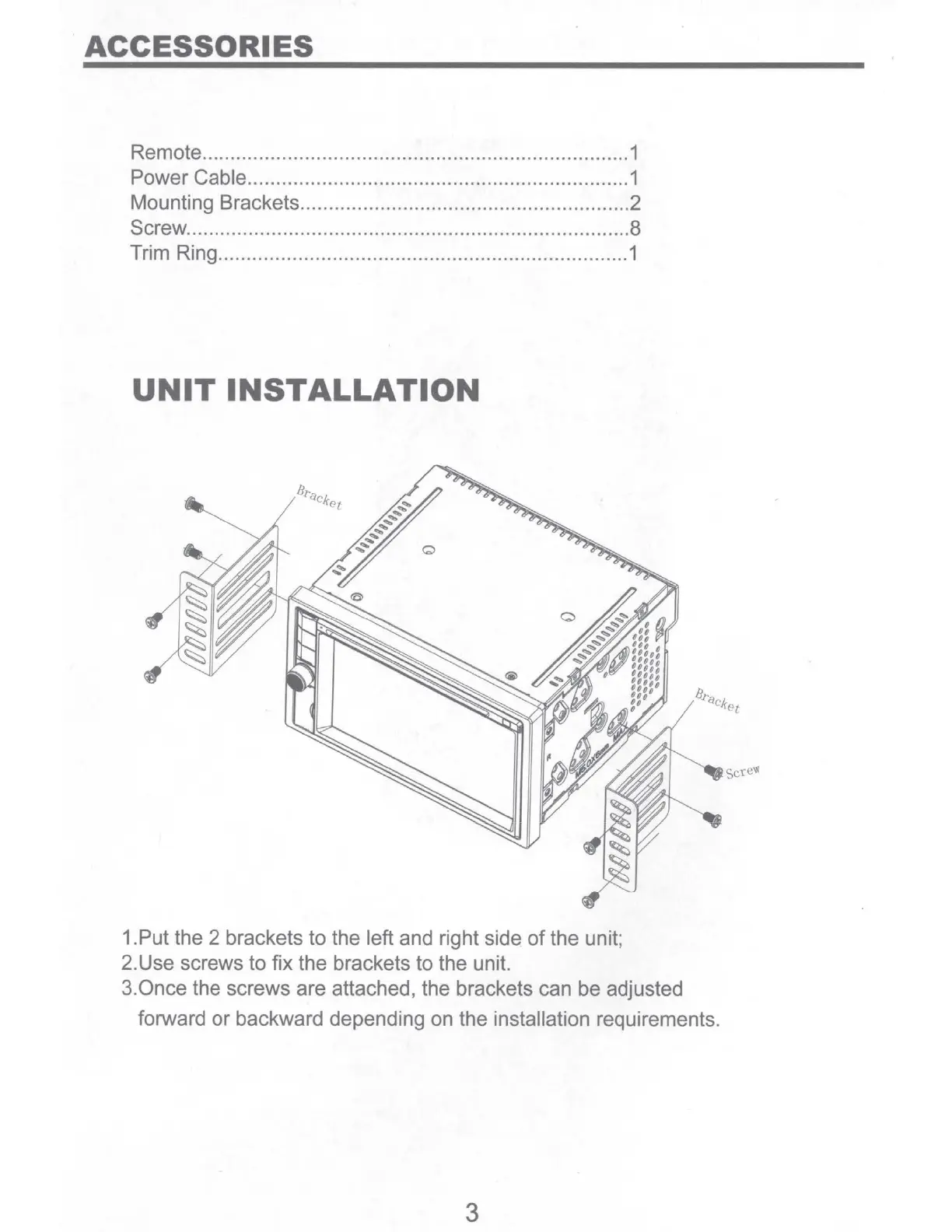 2.Use screws to fix the brackets to the unit.
