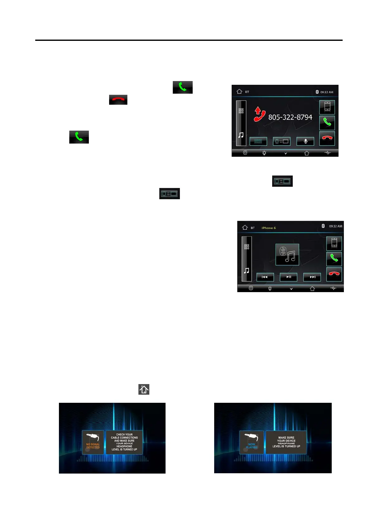 Tap music button to listen music in bluetooth mode.