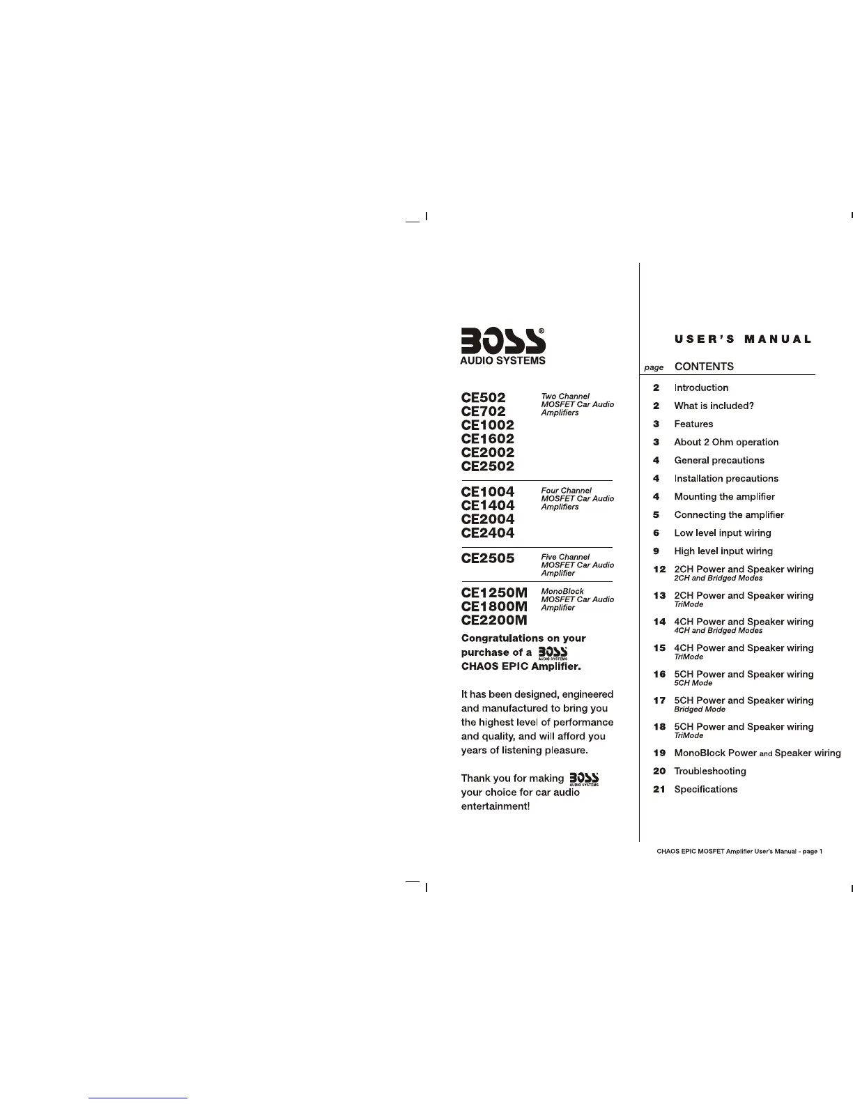 Boss Audio Systems CE1004 - Users Manual Introduction