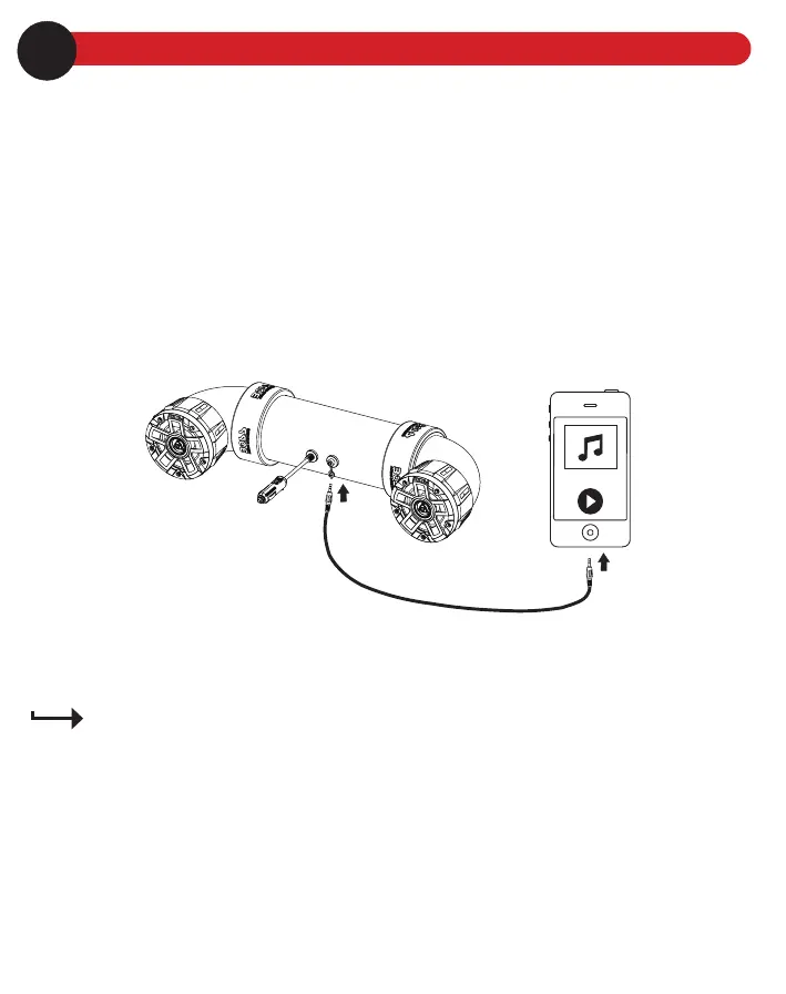 1. Connect the AUX input (3.5mm) from the sound system to the audio output jack on your mobile phone, using